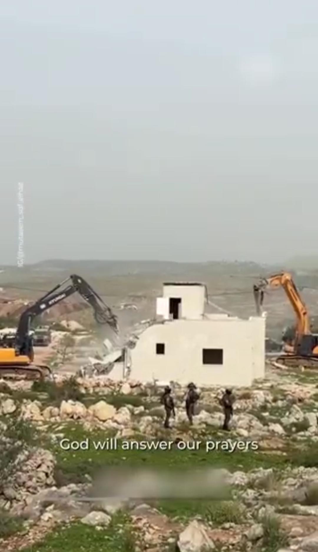 新闻快讯—— 在被占领的约旦河西岸拉姆安拉以西的舒克巴村,一名巴勒斯坦老人痛苦地看着以色列军队拆除他的家宅。 消息来源半岛电视台