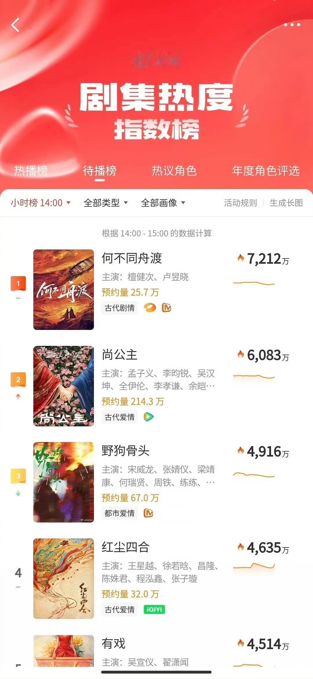 昨天情人节,十几部偶像剧扎堆放物料,满屏都是甜蜜轰炸。谁都没想到,杀出重围的,竟然是才刚刚开拍十几天的《何不同舟渡》,仅仅凭借一段11秒的片花,瞬间引爆全网! 恭喜《何不同舟渡》微指、百指双双登顶,且是领先一个数量级的碾压式登顶!谁能不为性张力拉满的谢却山着迷!谁懂男主这双青筋暴起的手把女主的脸掰过来亲! 檀健次和卢昱晓的化学反应,隔着屏幕都能烧起来。一个眼神交错,一次指尖轻触,弹幕瞬间爆炸:“这才是古言该有的性张力!” 特别是男主檀健次不愧是能把省略号都演出来的演技,如果缠绵悱恻是一种天赋谢却山无疑拿了满分! 根本就不需要台词,光是谢却山手上暴起的青筋,就写尽了克制到极致后的失控。猛然禁锢在怀中的拉扯,是溺水之人抓住浮木般的急切与眷恋。 这恰到好处的力度,沉迷的迷离眼神,感觉空气都是潮湿的,看着更带劲!氛围、情绪、感受,像电流一样从檀健次的表演中传达给观者! “告诉他,让他滚!!”“回答我”“可我有些喜欢你”!谢却山袖子一拂满案杯盏,流苏锦布顺势滑落,他端着人坐上红木案,身后悬空,她只能紧紧抱着他,无处可逃。 《何不同舟渡》原文中这个张力一下子就出来了,他的力道带着不容置疑的占有,眼神却软得一塌糊涂,慌乱、贪恋、无措、克制。 那截覆着薄汗的手臂,手臂上绷起的青筋,湿漉的肌理在镜头下泛着微光,仿佛连空气都被这份滚烫的情绪蒸得发潮! 檀健次把谢却山克制到极点后的失控全演出来了。有演技的演员就是能把书里的每个字都吃透并且超越原著啊,我已经陷进去了,真的毫不夸张,心扑通扑通跳! 檀健次太会演了啊,我看书的时候都没敢这么想象他的表情, 再一次对檀健次去古装剧支教的说法具象化了。靠一个眼神就能让人腿软,这种真实感好勾人,看的人心跳若狂。 能把吻戏拍成这样撩人的还有谁?二次元动漫都做不到这种演技真的好高级!这回应该可以让书粉满意了吧。完全演的和书里描述的一样甚至更好! 其实只要看了何不同舟渡的物料后,就很能理解檀丝为什么那么喜欢檀健次了,颜值魅力+演技魅力的双重极致魅力,但凡认真看他的作品就很难抵抗! 檀健次的戏为什么让人感觉舒服,关键的一点是节奏太好了,情绪是活生生的,眼神动作统一,像诗,像舞,精巧,合辙,充满韵律,没有一丝丝凝滞,他太会演了,给的就是你想的,而且比你要的更多 ! 檀健次实在是新生代里,我唯一觉得美貌与演技互为加持的人!此男很神奇的点就在于脸虽然很俊秀但气质又很沉稳!