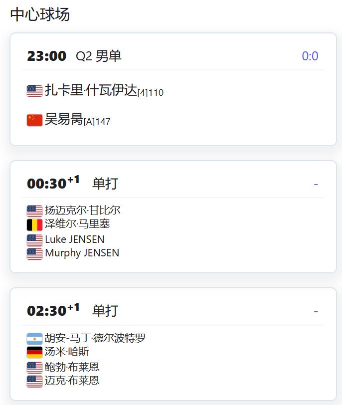 W75布里斯班,女单决赛,朱琳4-6,5-7不敌琼斯,遗憾获得女单亚军; 赛程: WTA1000赛迪拜站,女单第一轮,郑钦文将连续第二年对阵斯特恩斯; 女双第一轮,徐一璠/杨钊煊将对阵佩雷斯/斯楚尔斯; ATP250赛德拉海滩赛,男单资格赛第二轮,吴易昺将与4号种子什瓦伊达争夺一个正赛席位; WTA125 LES SABLES D'OLONNE,女单资格赛第一轮,杨一迪将对阵英国球员度德尼; WTA125米德兰,女单资格赛第一轮,徐诗霖将对阵7号种子特卡乔娃。