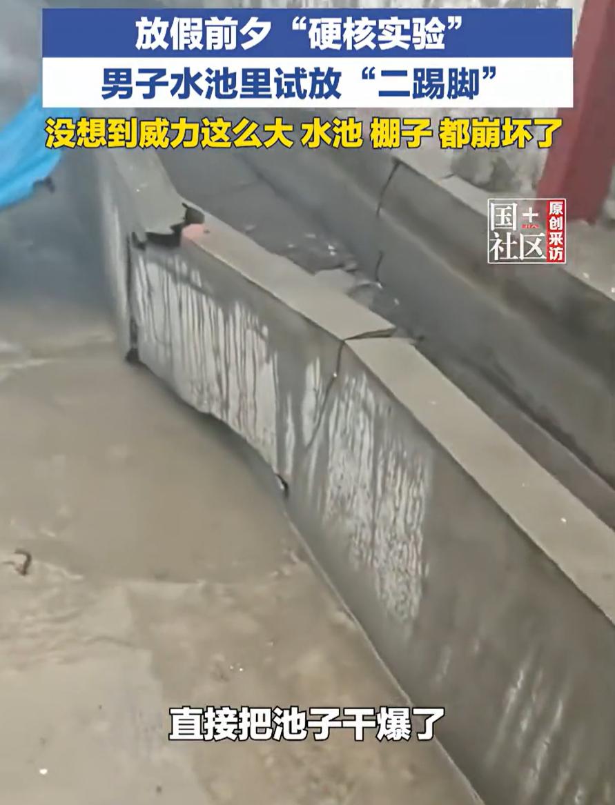 人怎么能闯这么大的祸!安徽合肥,男子去朋友家串门,看到有二踢脚,突然好奇鞭炮扔到水池里能不能炸掉,就当场实验起来,没想到,鞭炮扔到池子后威力巨大,直接把池子都给崩坏了,男子也是当场懵了,没想到会有这么大的威力 当天,男子看见朋友家院子里放着些二踢脚,都是准备过年时放的。他也不知道哪根筋搭错了,突然冒出个想法,想试试把这玩意儿扔水池子里能不能炸得动。说干就干,他点着一个就丢进了水池 他可能琢磨着,最多就是噗的一声闷响,或者跟在地上放没啥区别,响一下就完了。可万万没想到,这二踢脚进水的瞬间,轰的一声巨响,水池里的水直接被炸上了天,跟喷泉似的,水池边上的砖也被崩得七零八落。这哥们儿当时就傻在那儿了,压根儿没想到威力能大成这样 回过神来,他也知道自己闯祸了,赶紧跟朋友道歉认错,好在水池最后是修好了,没造成更大的损失 有网友也跟着疑惑:你确定扔的是鞭炮不是手雷? 还有网友说:小时候一个小红炮,最小的那种,我点着扔进水缸,水缸都裂开了 其实仔细想想,这事儿真不是个例,不少人小时候可能都干过类似的傻事。鞭炮在水里爆炸,威力比在空气中大得多,这是个物理常识。水不容易被压缩,爆炸产生的能量在水里传递效率更高,冲击力自然就更猛。很多人意识不到这一点,觉得水能灭火,就能消减爆炸的威力,结果往往吃了大亏 说起来,这种好奇心谁都有,尤其是男的,小时候都爱折腾点东西。但这种好奇心要是用错了地方,后果真挺吓人的。好在这次只是崩坏了水池,人没受伤,要是不小心崩到自己或者别人,那麻烦就大了