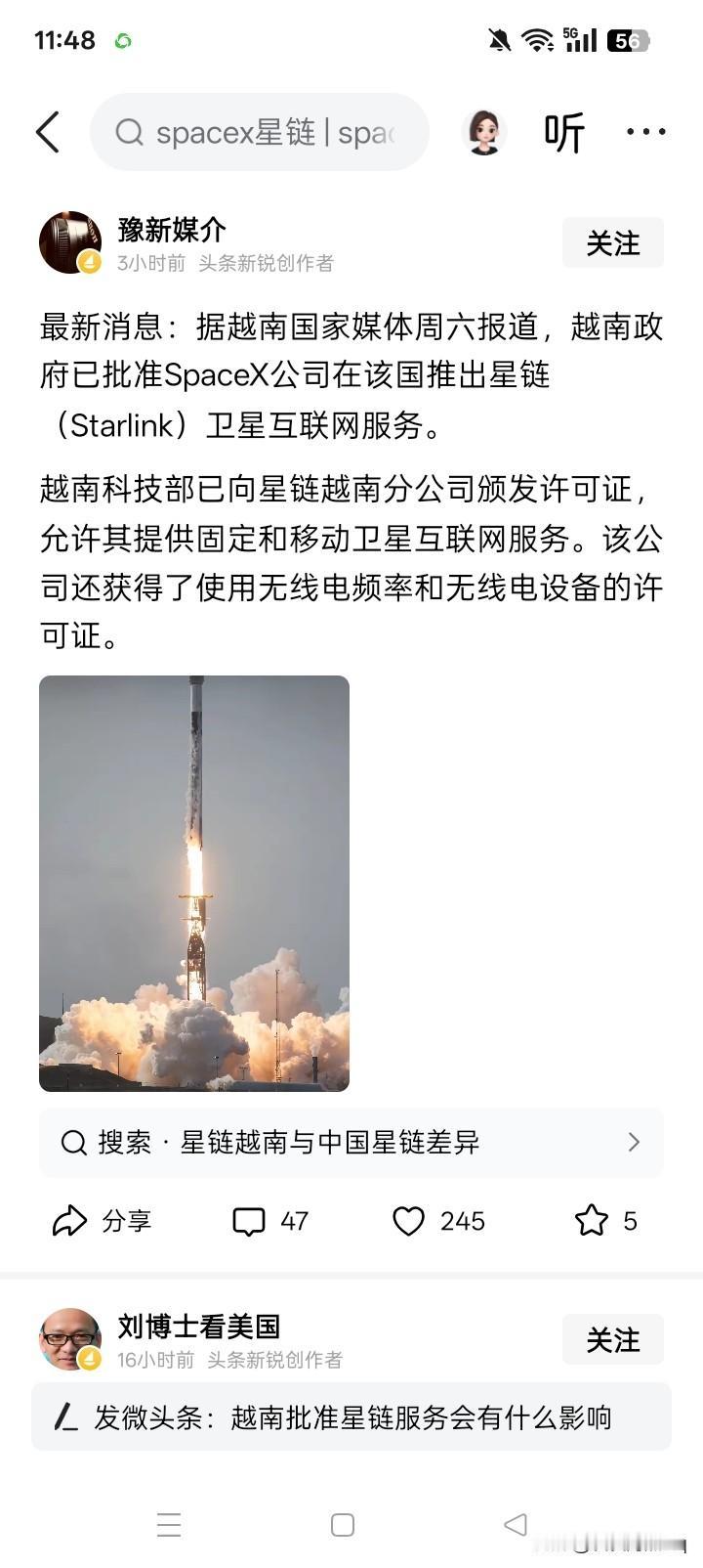 星链系统笼罩? 当初并不被一些人看好的、马斯克的星链系统,真的是像滚雪球一样,越滚越大。 据有消息说,目前全世界已经有157个国家,接受和使用马斯克的星链系统。今天有消息又说,昨天越南政府已经批准了越南人使用星链系统,其科技部向星链公司在越南的分公司颁发了许可证,允许星链公司向越南提供固定和移动服务。 在2023年的下半年的时候,星链系统好像还只不过是向全球的90个囯家提供服务,现在已经达到157个,联合国的会员国也可能不过就是193个国家。 那么,允许和使用星链系统,在通信、通讯方面,究竟有没有什么优势呢?似乎有一部分人说有优势,但也有部分人说没有。不过,如果是战争时期,好像是具有很大的优势,这个问题在乌克兰的战争中,似乎已经显而易见。 当然,马斯克可以建立星链系统,别的人或国家也可以建立星链系统,但很可能就是由于马斯克的星链系统已经先入为主,后来的星链系统陷入客户稀少,代价高昂而已。