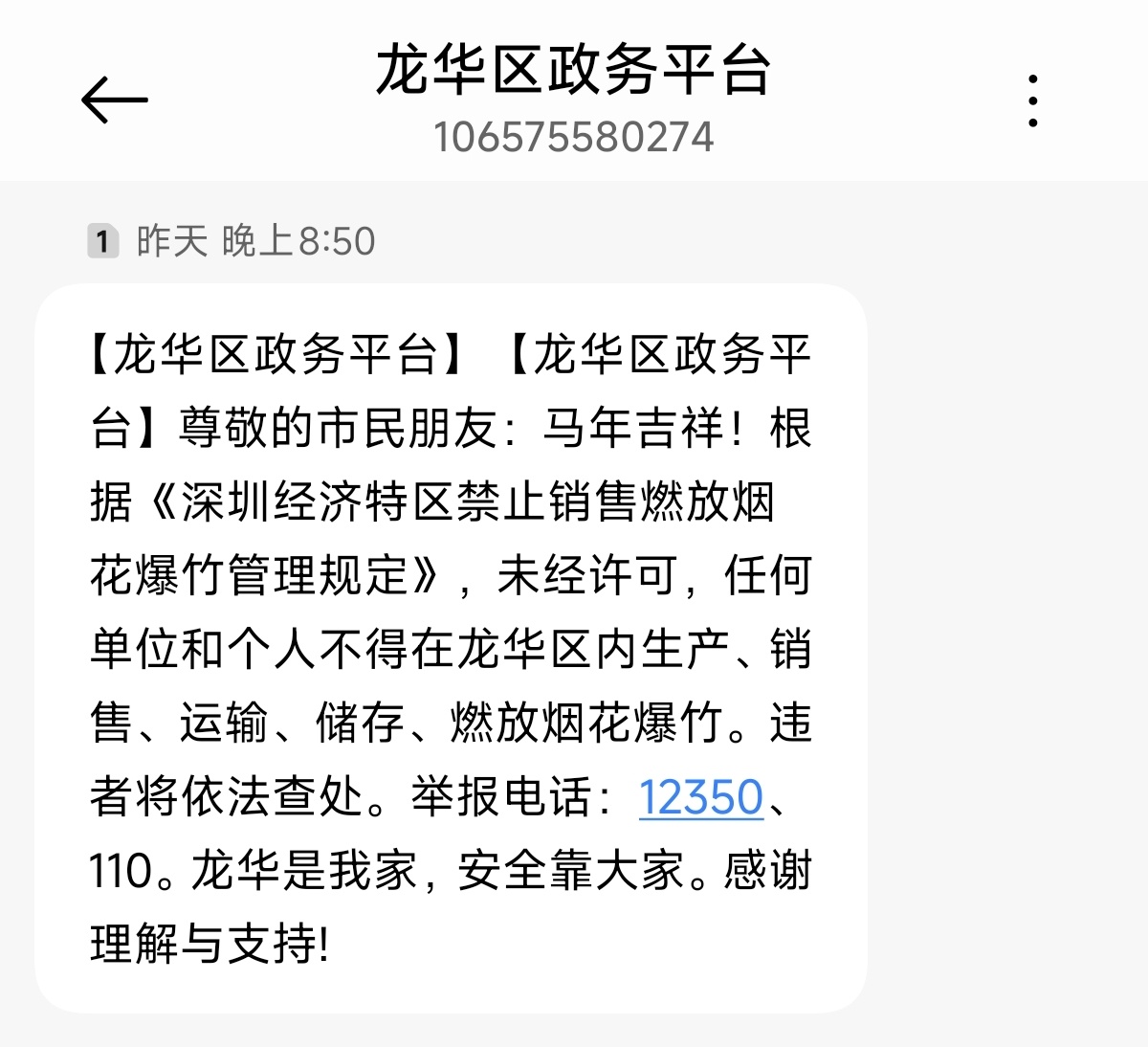 今年禁烟花爆竹的力度感觉比去年严格.....龙华区都给我发短信了