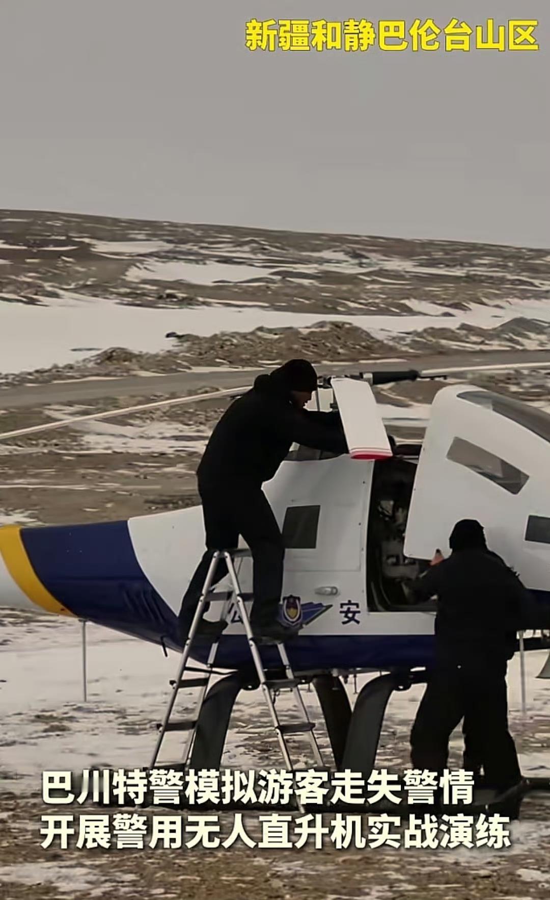 新疆公安装备的警用无人直升机 新疆公安已装备警用无人直升机,用于反恐处突、应急救援、空中侦控等任务。2021年,新疆公安厅列装2架AC312E警用直升机,实现警用直升机配备零的突破,该机型具备600公里直航能力,机动性强,不受地面交通限制。近年来,多地公安部门进一步引入无人直升机,如巴州公安局利用其开展高海拔搜救、物资投送和视频图传等实战演练。