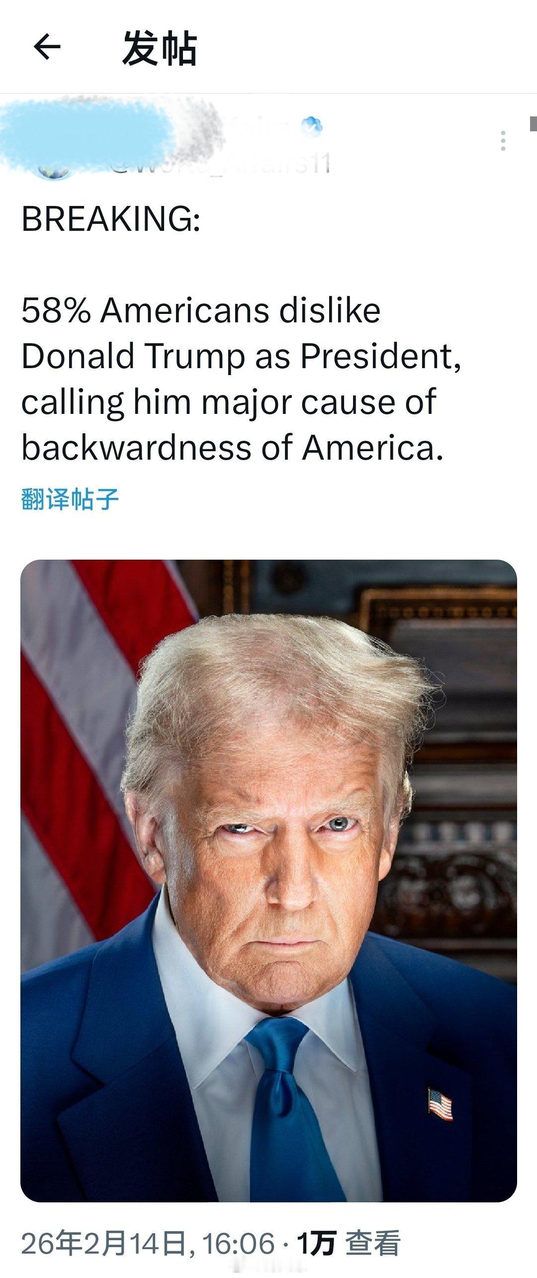 重大消息:58% 的美国人不喜欢唐纳德·特朗普担任美国总统,他们认为他是导致美国