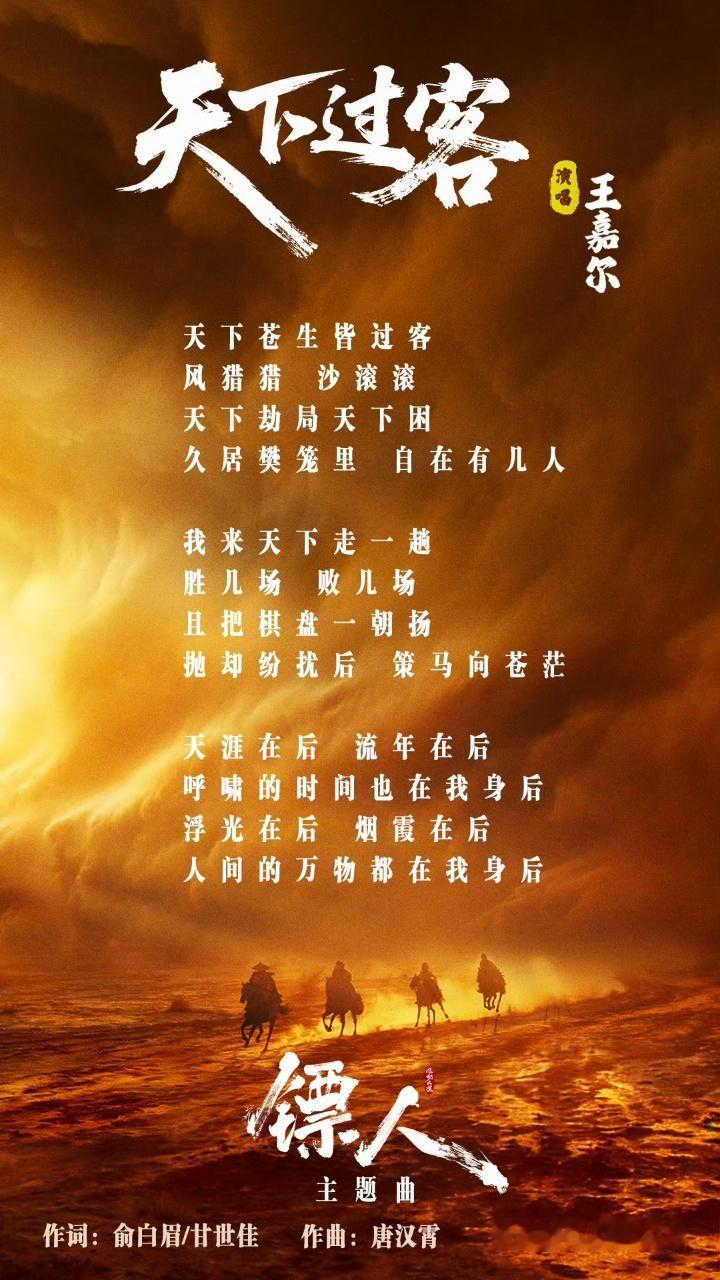 王嘉尔镖人主题曲有效宣传 被的歌声震撼到了!《天下过客》收获多家主流媒体好评,专业乐评人认可,将大漠江湖的豪情与温柔唱得恰到好处,太期待电影了!