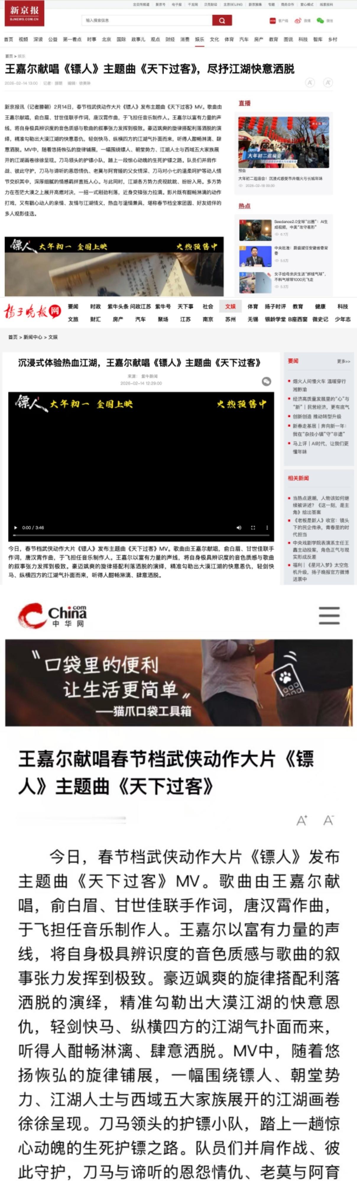 王嘉尔镖人主题曲有效宣传 被的歌声震撼到了!《天下过客》收获多家主流媒体好评,专