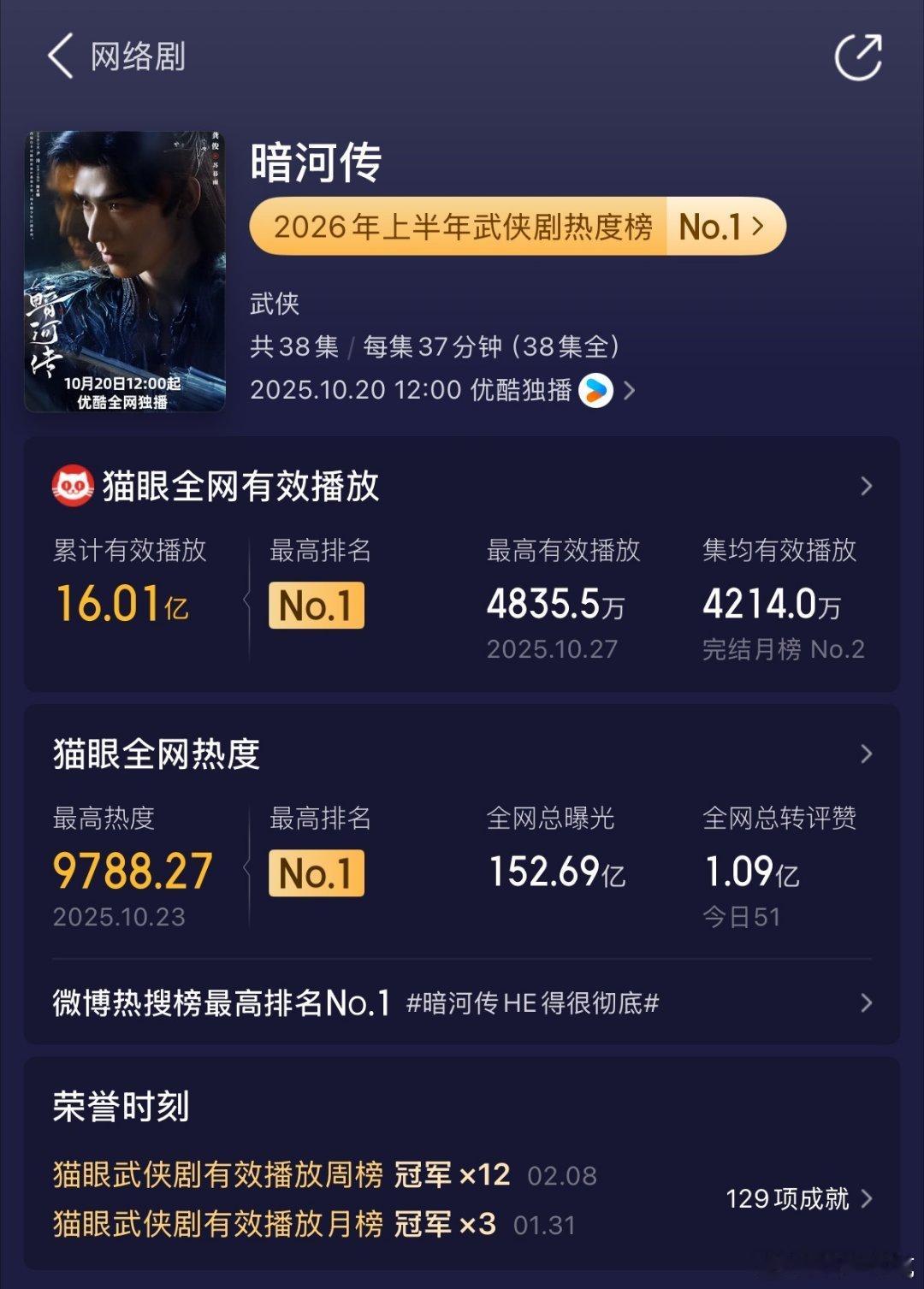 龚俊的暗河传完结后长尾还不错,一些榜单目前依然还在上榜,热梗也有人还在用。