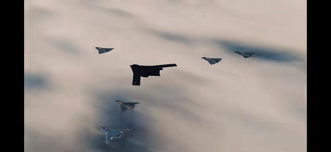 没想到这张动图,歼-20战斗机,歼-35战斗机竟然都没有跟上来? 这豪横配置以歼-36战斗机打头,歼-50战斗机掩护两翼,中间是轰-20战略轰炸机,世界上谁能配的上如此豪横的出击?