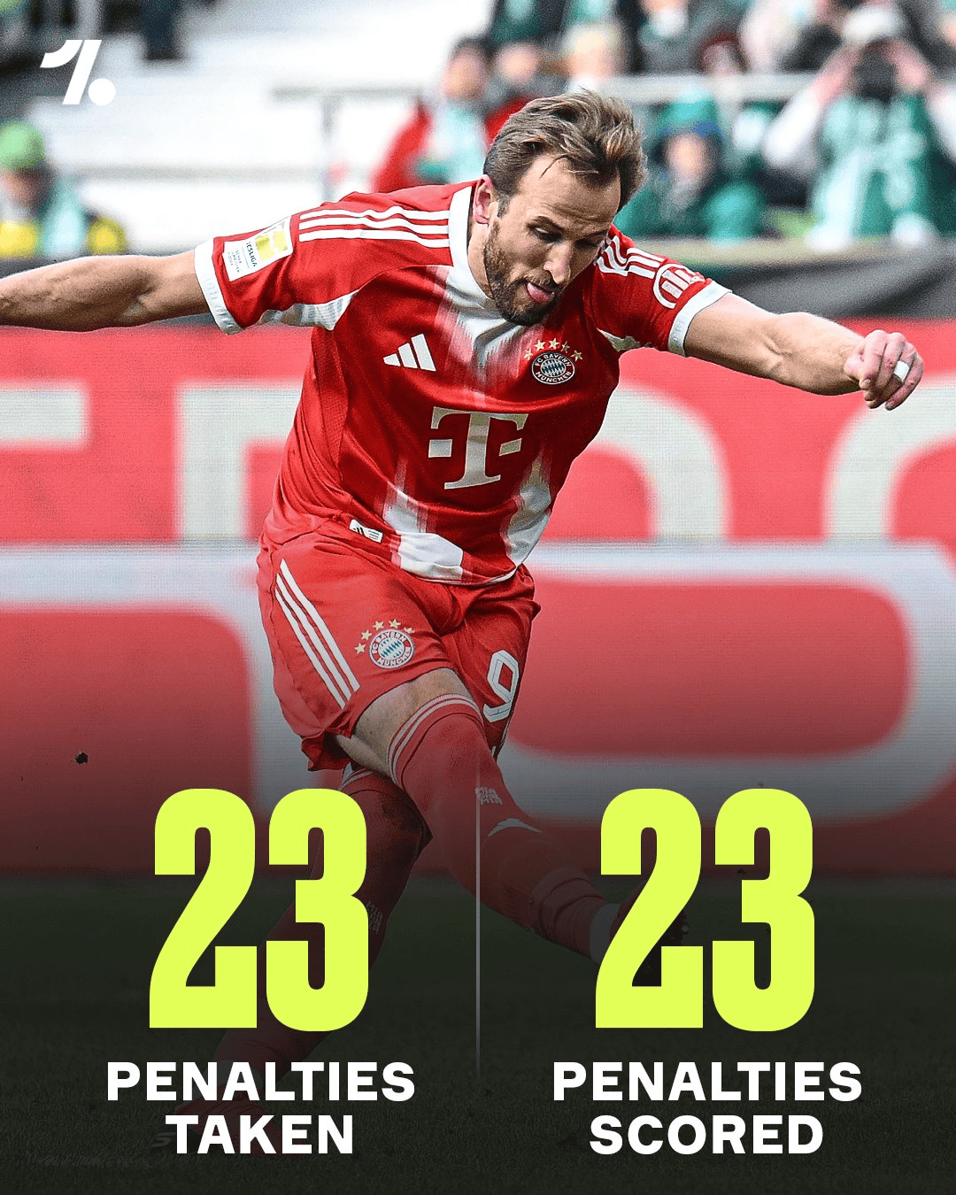 根据OneFootball的统计,凯恩创造了一项完美记录——效力拜仁期间23次主罚点球全部命中,从无失手。