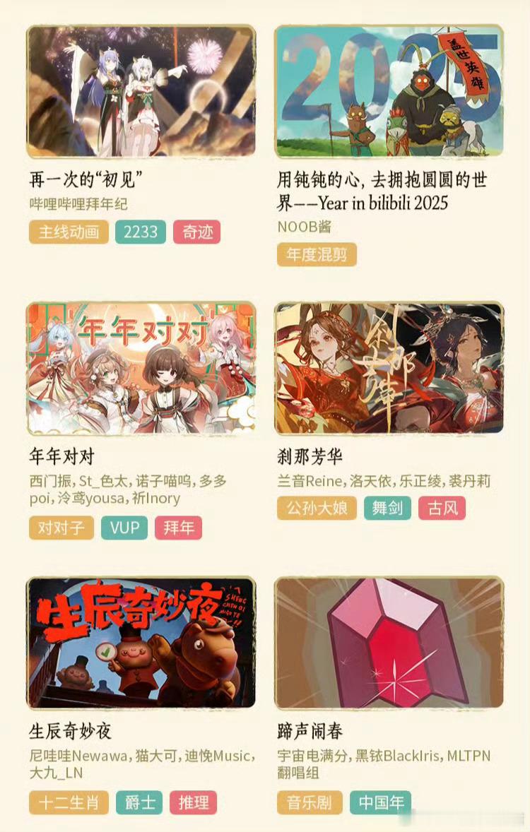 二次元春晚节目单看到节目单瞬间激动到跺脚!从热血国风舞台到创意动画短片,还有UP主特别企划,每一个都想尖叫!洛天依、李常超、屠洪纲……这是什么神仙阵容啊,快乐简直要溢出来了!