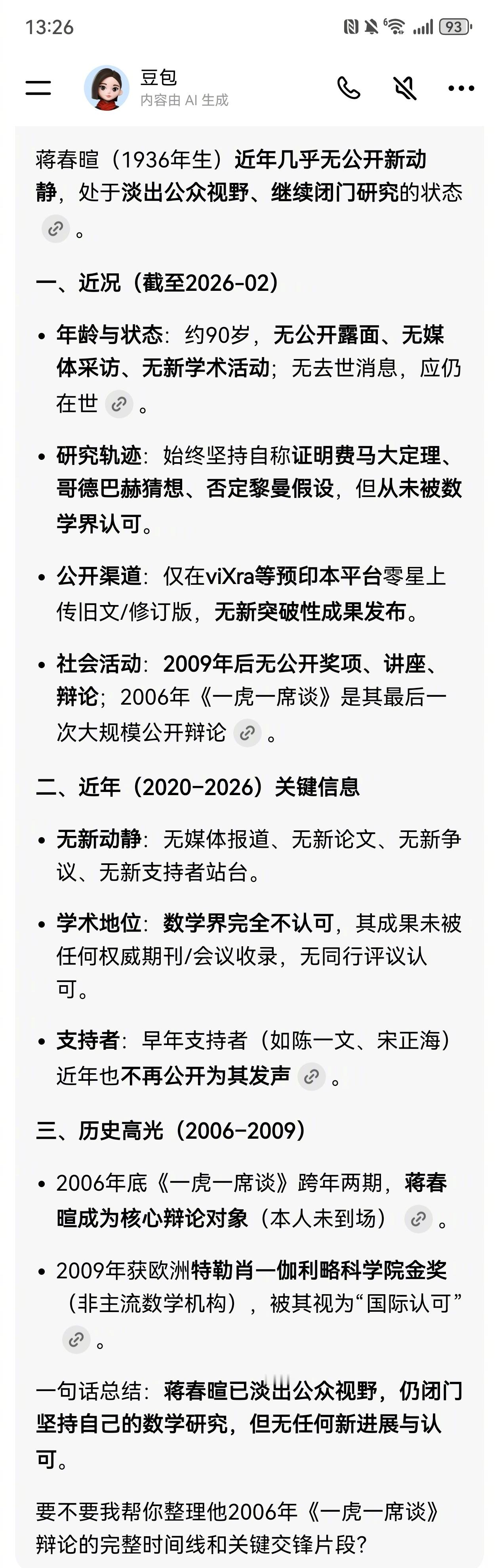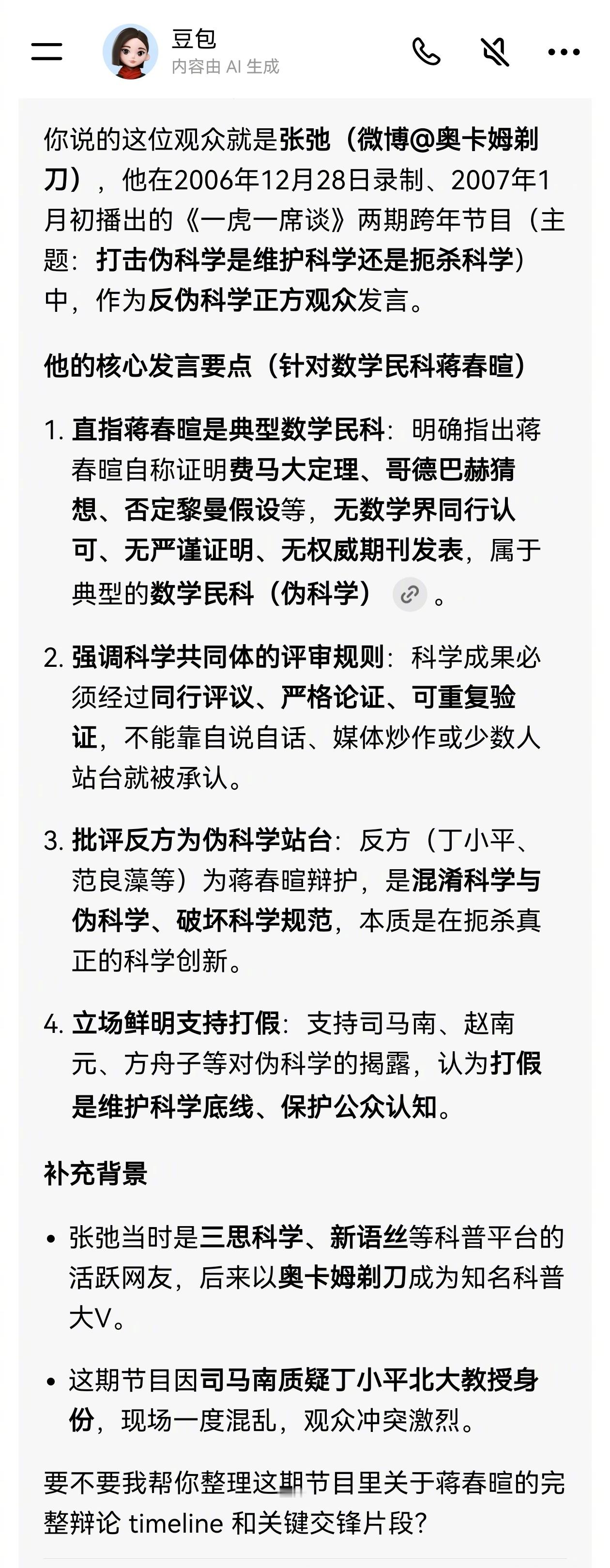 其中有个数学民科话题:蒋春暄自称证明了费马大定理,被正方赵南元批驳打架。