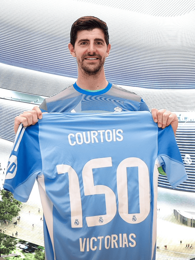 虎扑02月15日讯西甲联赛,皇家马德里4-1大胜皇家社会,这是库尔图瓦代表皇家马德里在西甲联赛中收获的第150场胜利。赛后,皇马门将收获了定制纪念球衣。