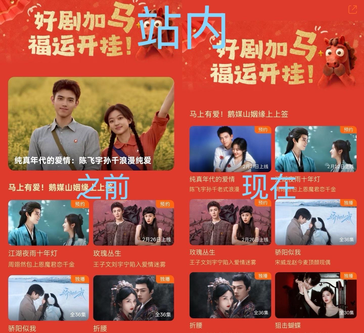 腾讯视频发布春节追剧片单陈飞宇跟孙千主演的纯真年代的爱情作为央八黄金档,最初是拥有占头版跟配超大海报。但最后却撤掉大图与头版位置而且时间都能写错