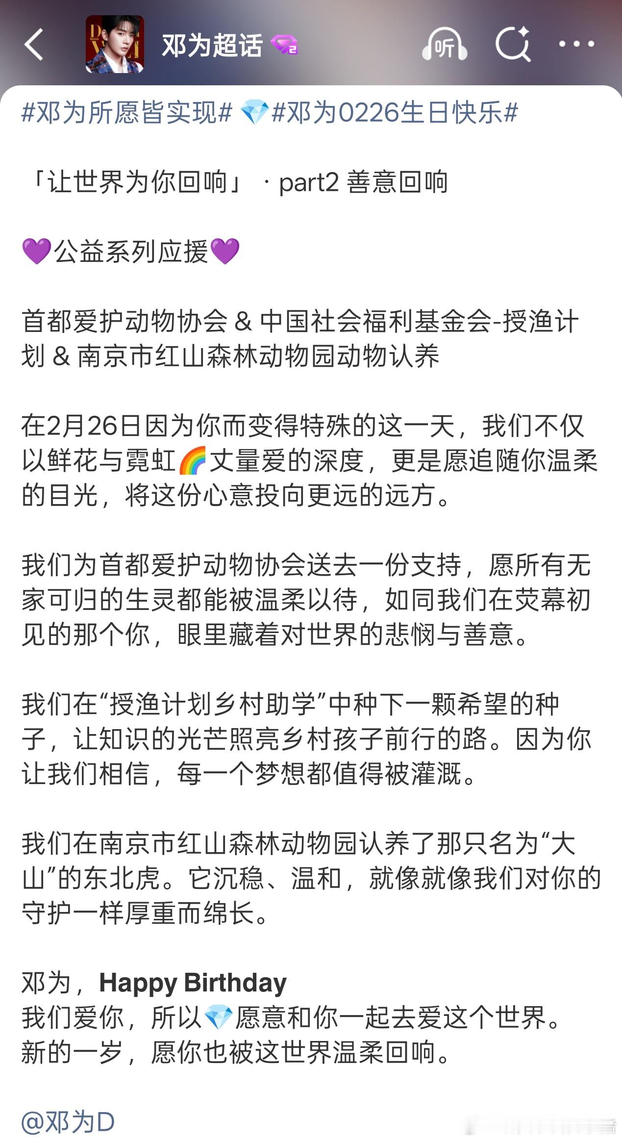 邓为粉丝准备的公益应援,生日即将到来,钻石收养流浪动物并捐赠物资,好有意义,都是超级好的人