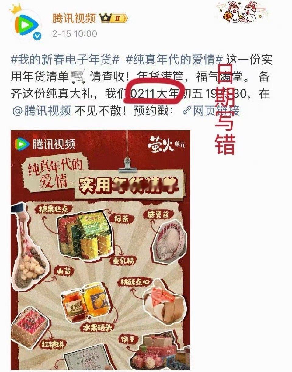 腾讯视频发布春节追剧片单,陈飞宇 孙千《纯真年代的爱情》 本来作为央八黄金档,最初占头版、配超大海报,但后面直接改海报,改固屏,这是什么操作?而且还是寒假唯一上央八黄金档的剧