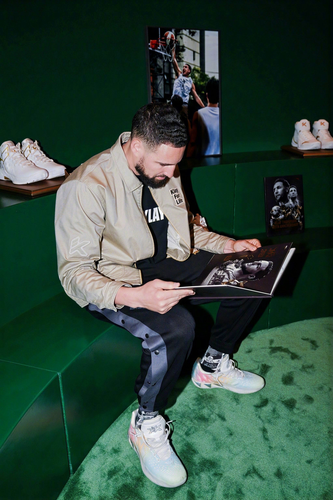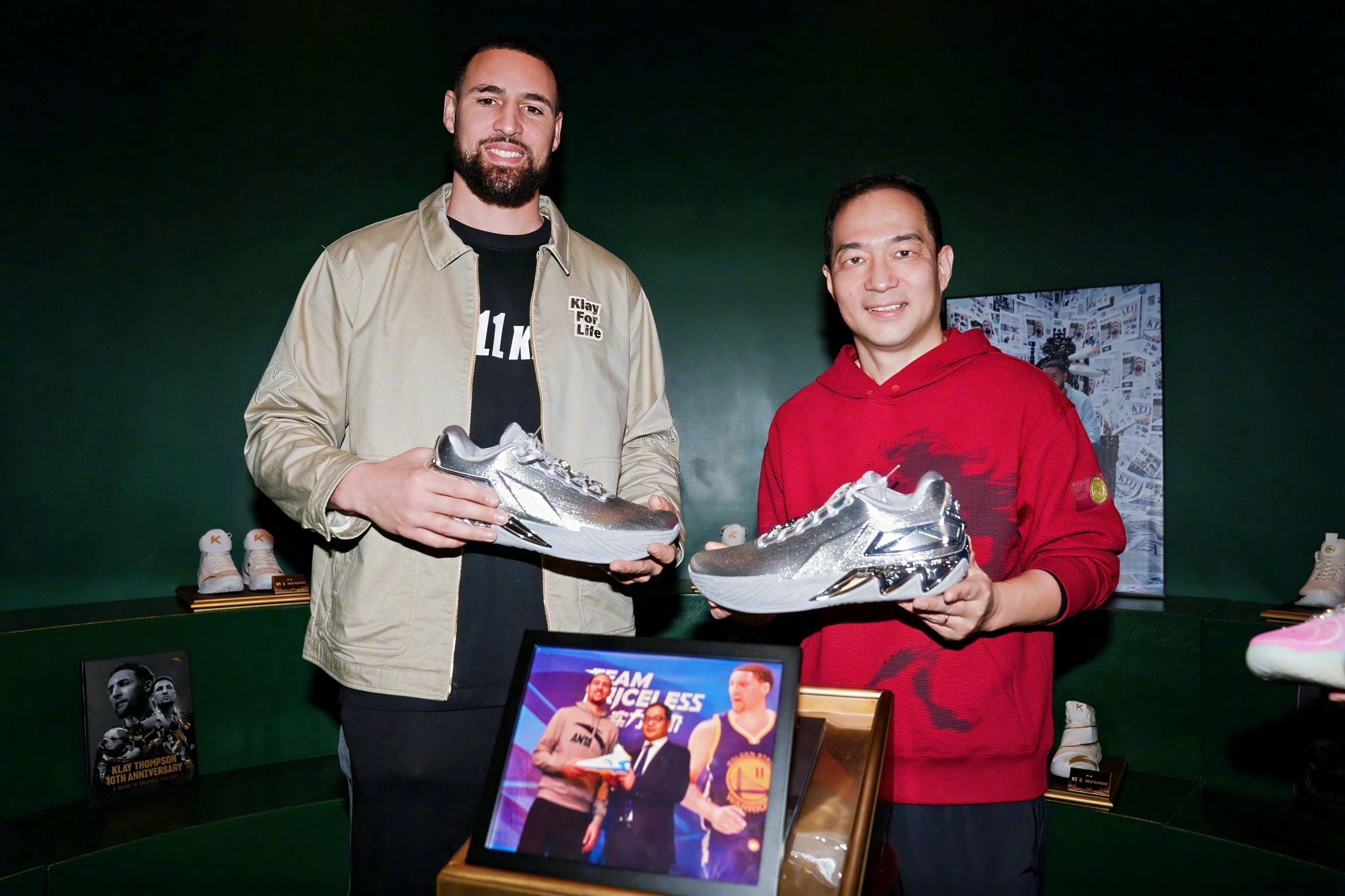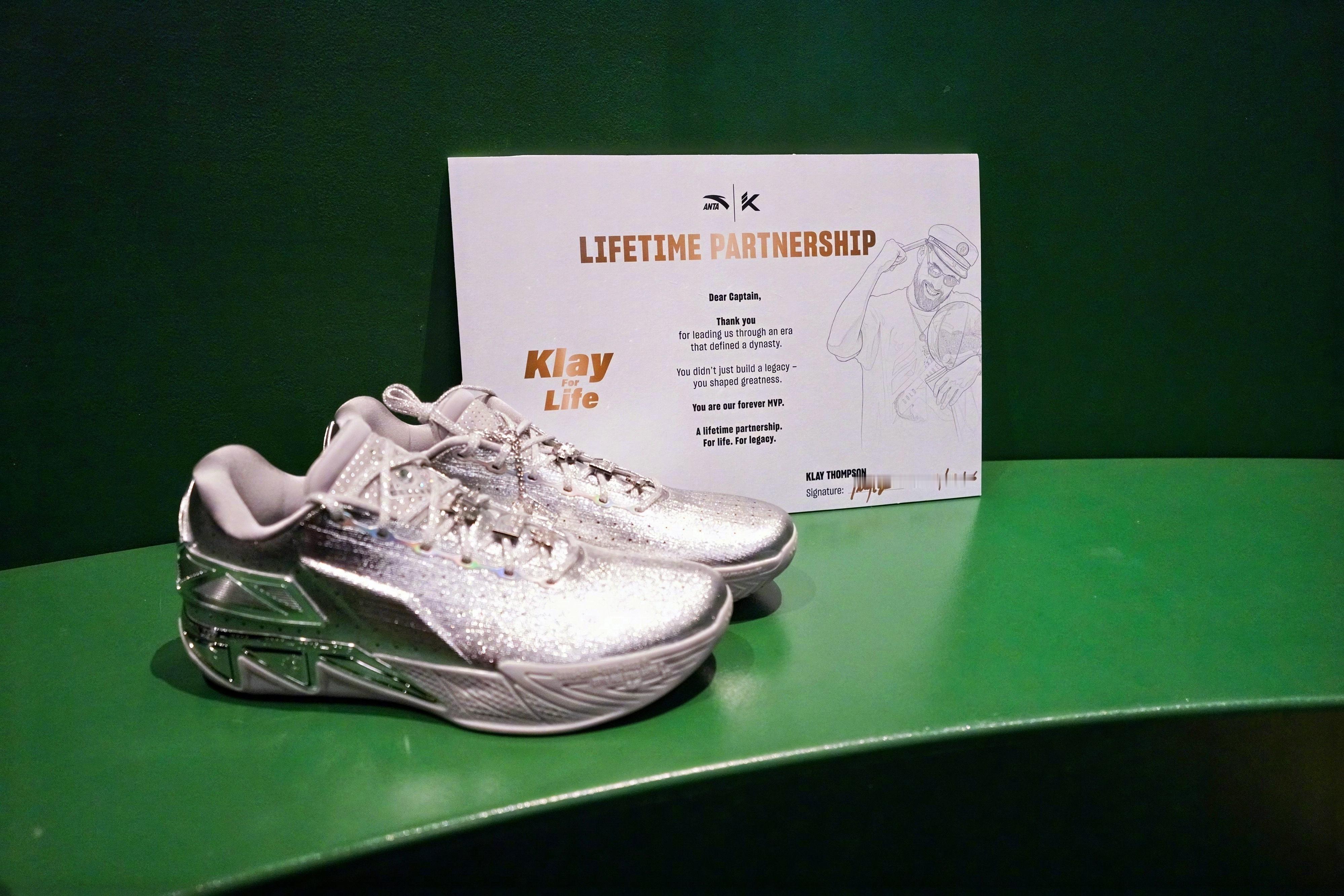 没有人不喜欢马,汤普森的个性和气质,又跟马是如此相像:球场上一马当先三节60分,单枪匹马单节37分,总是在第六战金戈铁马定乾坤,为勇士立下汗马功劳4冠军;而从场上下来,他又跟马一样安静,沉静,谦逊而从不张扬。十二年相伴,安踏从伯乐变知己,KT系列见证他巅峰与复出,也见证国产篮球鞋的成长。从马年到马年,初心始终不变。 这份终身合同是一个宣言:你陪我走过黄金年代,我许你一个永远。这是信任,这是承诺,更是安踏对汤普森一如既往的重视。现场那双为汤普森定制的镶钻KT11战靴,还有汤普森专属荣誉区,都在诉说着这十二年的风雨与荣光。克莱汤普森终身合同