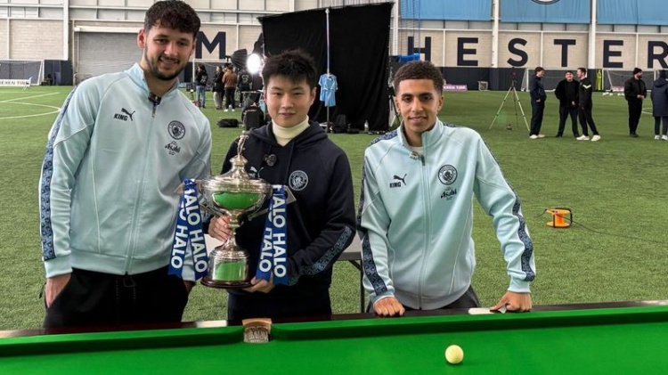 新科世界冠军赵心童受俱乐部邀请,在阿提哈德球场观看了曼城对阵勒沃库森的欧冠比赛,次日又前往球队训练基地参与内容拍摄活动。赵心童在绿茵般的台呢上向后卫刘易斯和门将特拉福德展示了斯诺克技艺。