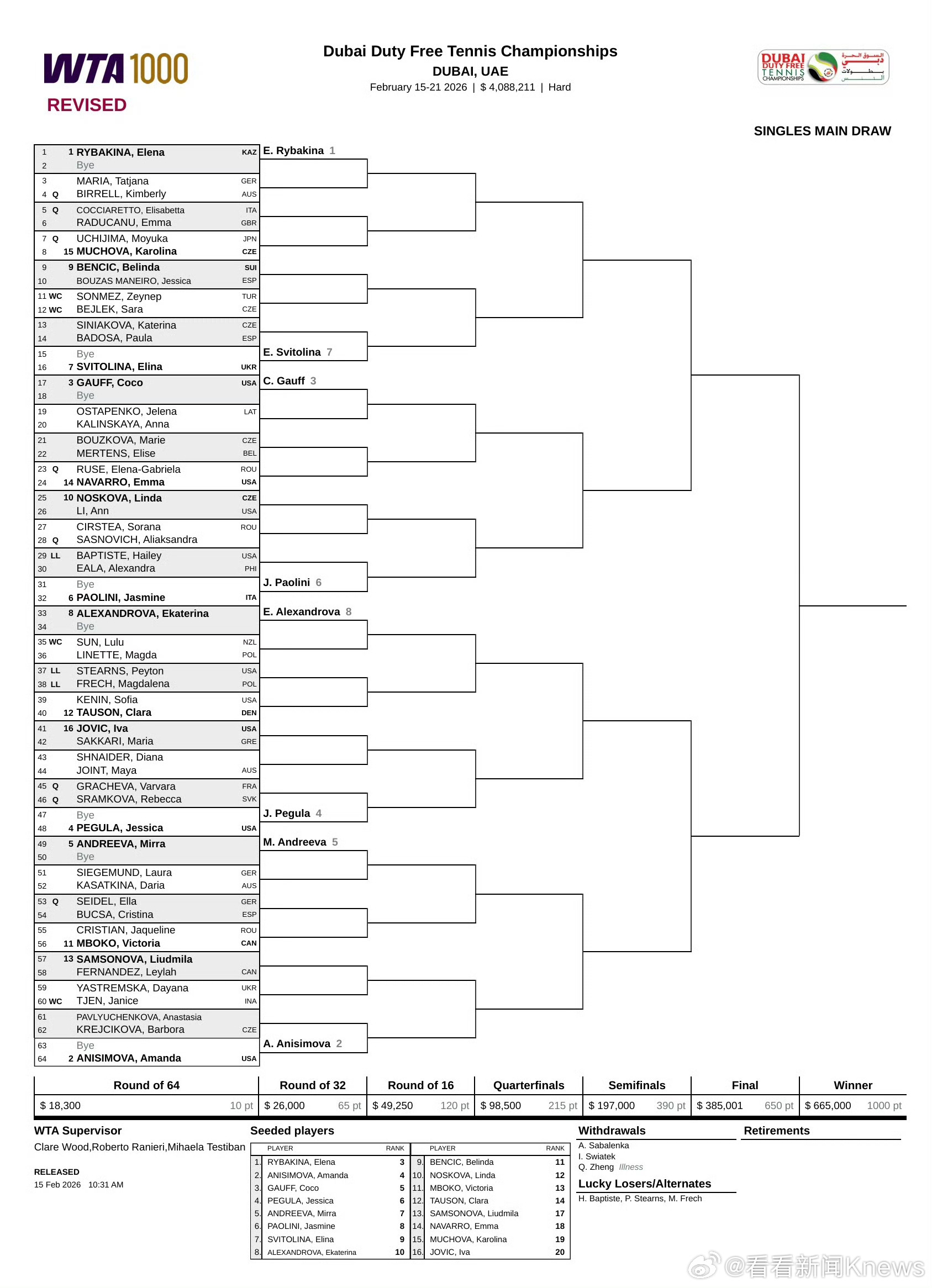 【#郑钦文因病迪拜退赛#】 2月15日,据