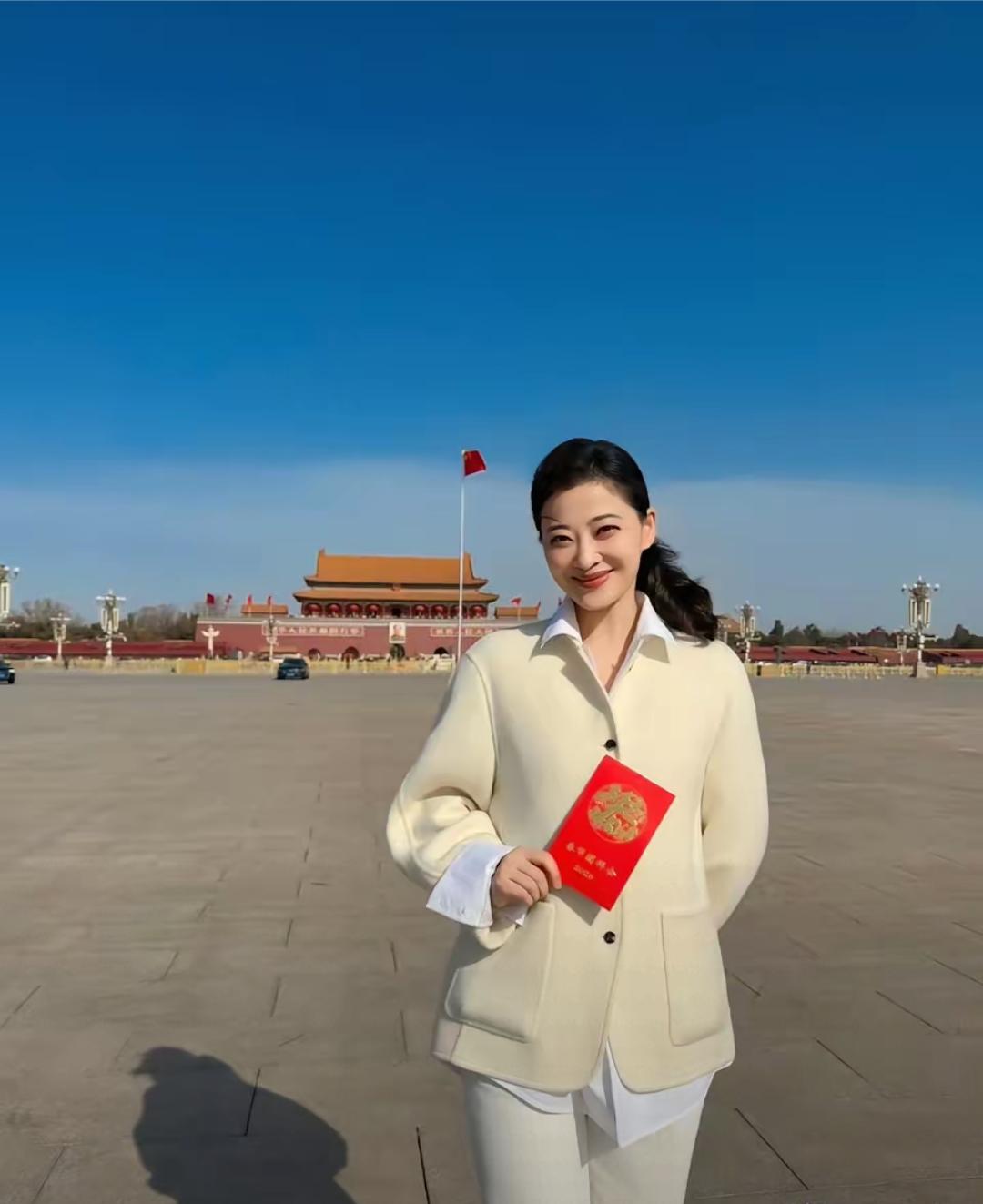 一向低调的演员梅婷,在2月14日,罕见高调发文,“祝我们强大的祖国越来越好!虽然简单只有13个字,但却包含了激动和骄傲之情。 梅婷晒出在天安门广场,穿着一身米白色休闲西装,手里红色证件,笑盈盈的,端庄大气,还晒出了人民大会堂内那幅著名的巜江山如此多娇》巨幅图画,背景里的国徽和红旗,让这组照片份量感一下子就拉满了。 梅婷作为资深演员,能受邀参加这样的国家级活动,既是个人荣誉,也体现了主流对她演艺事业和社会影响力认可。 几天前,梅婷在湖南卫视春晚舞台上献唱《家的味道》,用温柔歌声传递亲情,又以主持人亮相CMG中国电视剧年度盛典。 梅婷每一次的亮相,都沉稳大气,用行动诠释了文艺工作者担当与责任。