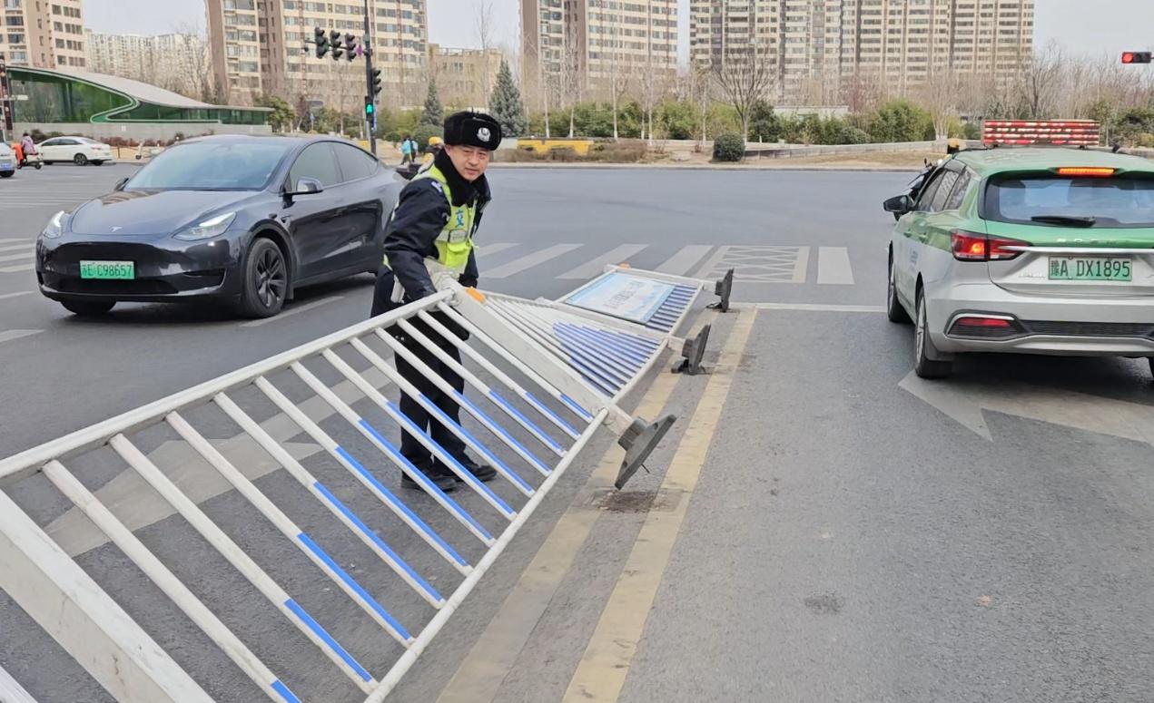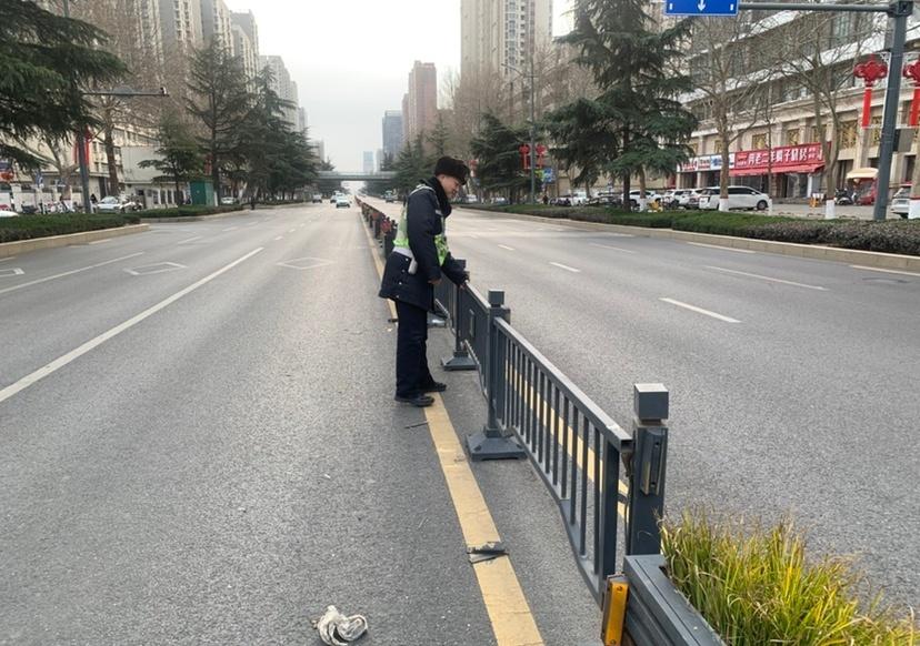 【大风中的坚守 他们徒手扶起“平安路”】2月15日,正值春节前夕返程客流高峰,郑州受大风蓝色预警影响,风力强劲。在凛冽寒风中,郑州交警逆行而上、坚守一线,用行动守护万家团圆路。上午,交管四大队蜀黍在航海路尚义路执勤时,发现路段中心隔离护栏被大风吹倒,倒伏路面,严重影响车辆通行安全。二人立即行动,徒手将倒伏的护栏一扇扇扶起、复位固定,迅速恢复交通秩序,消除安全隐患。 与此同时,交管二大队蜀黍巡逻至中原路(华山路至冠云路)处,同样发现部分道路中间隔离护栏被风刮倒。为避免影响道路通行,将倒下的护栏一节一节扶正,确保过往车辆安全通行。 风再大,吹不散守护的决心;郑州交警用一次次俯身、一次次扶起,为群众出行保驾护航,让返程路上更有温度、更添平安。