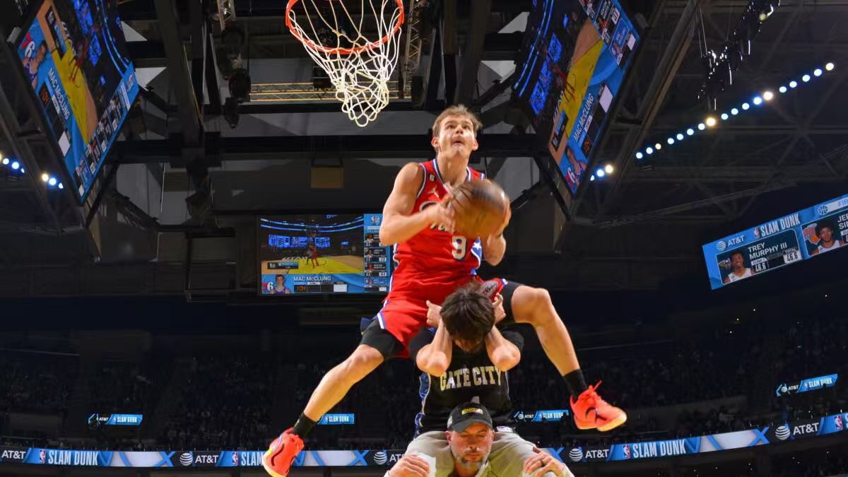 为了在2025年实现三连冠,麦克朗知道自己必须更有创意。其中一记扣篮,他飞跃了一辆起亚汽车;另一记扣篮,他同时抓起两个球完成暴扣,其中一个球还是从梯子上的人手中接过的。麦克朗从一名黑马,一跃成为扣篮史上的传奇人物。