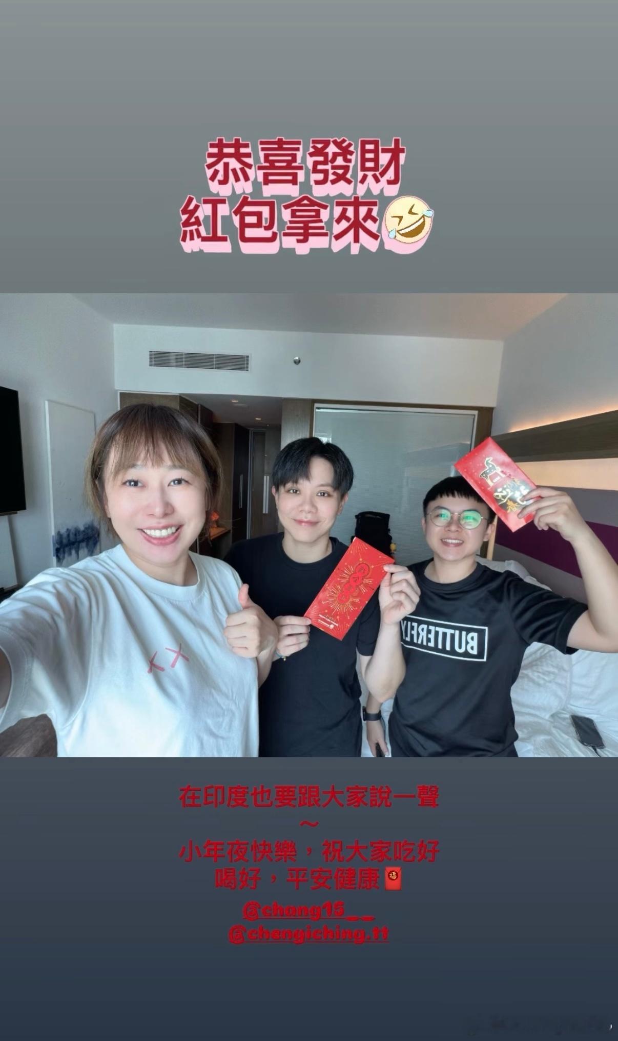 郑怡静和郑佳奇教练、物理治疗师恭喜发财🧧