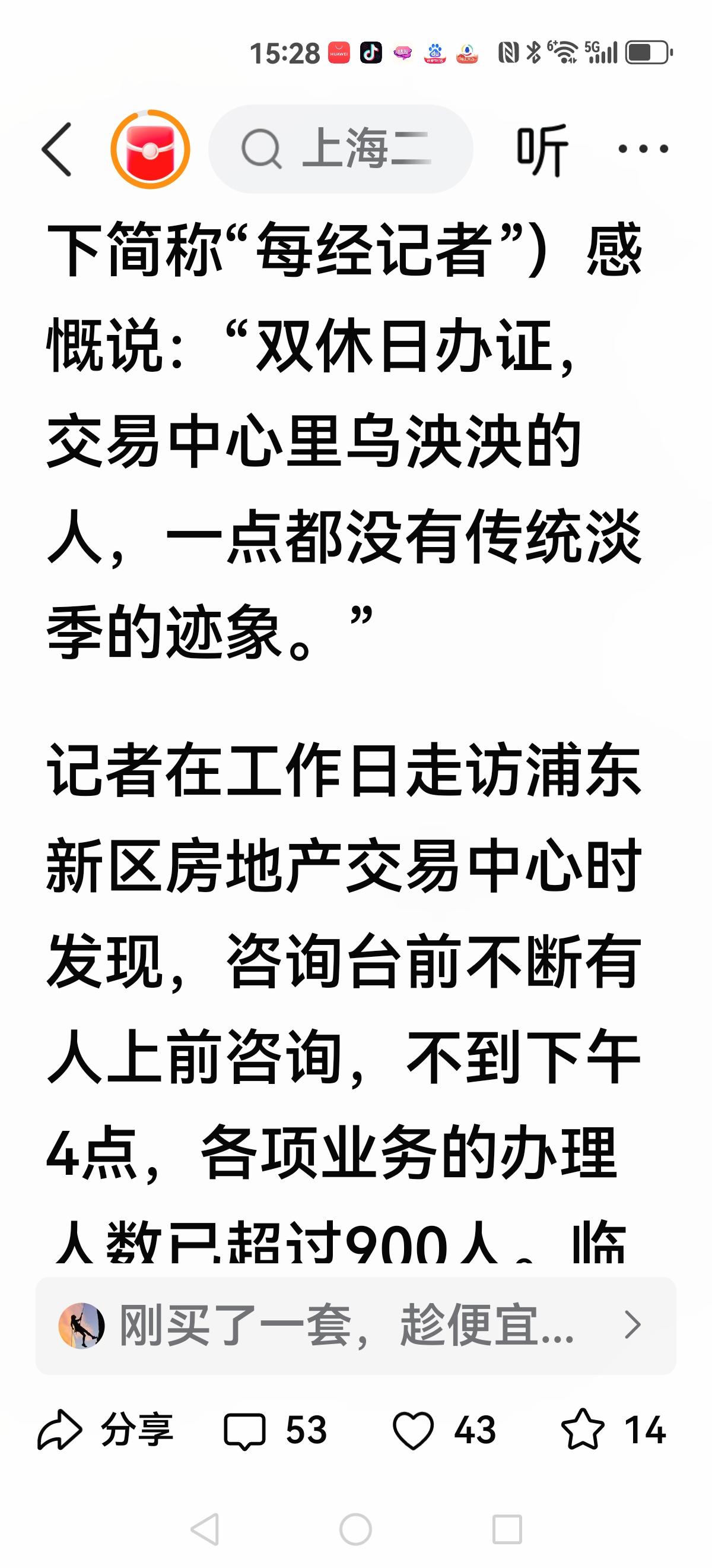 【交易中心乌泱泱的人】 北哥摔杯为号可能都晚了,没反应过来,前几天还嘴硬说上涨几天,马上就回落,而且就是两个城市,很勉强。 如今全面上涨趋势已经来临,很多人还担心人口少了,失业率高了,都不敢买房,其实买房本来就是少数人的事,但还有一部分人是六个钱包不能为之而为之。 一旦房价调头,有可能就是报复性反弹,不以人的意志为转移,也是国家政策逐步展示威力。 北哥的除以二,再降40%何以颜面扫地,看来当年感谢北哥的假道士,如今是不是后悔不该听北哥?