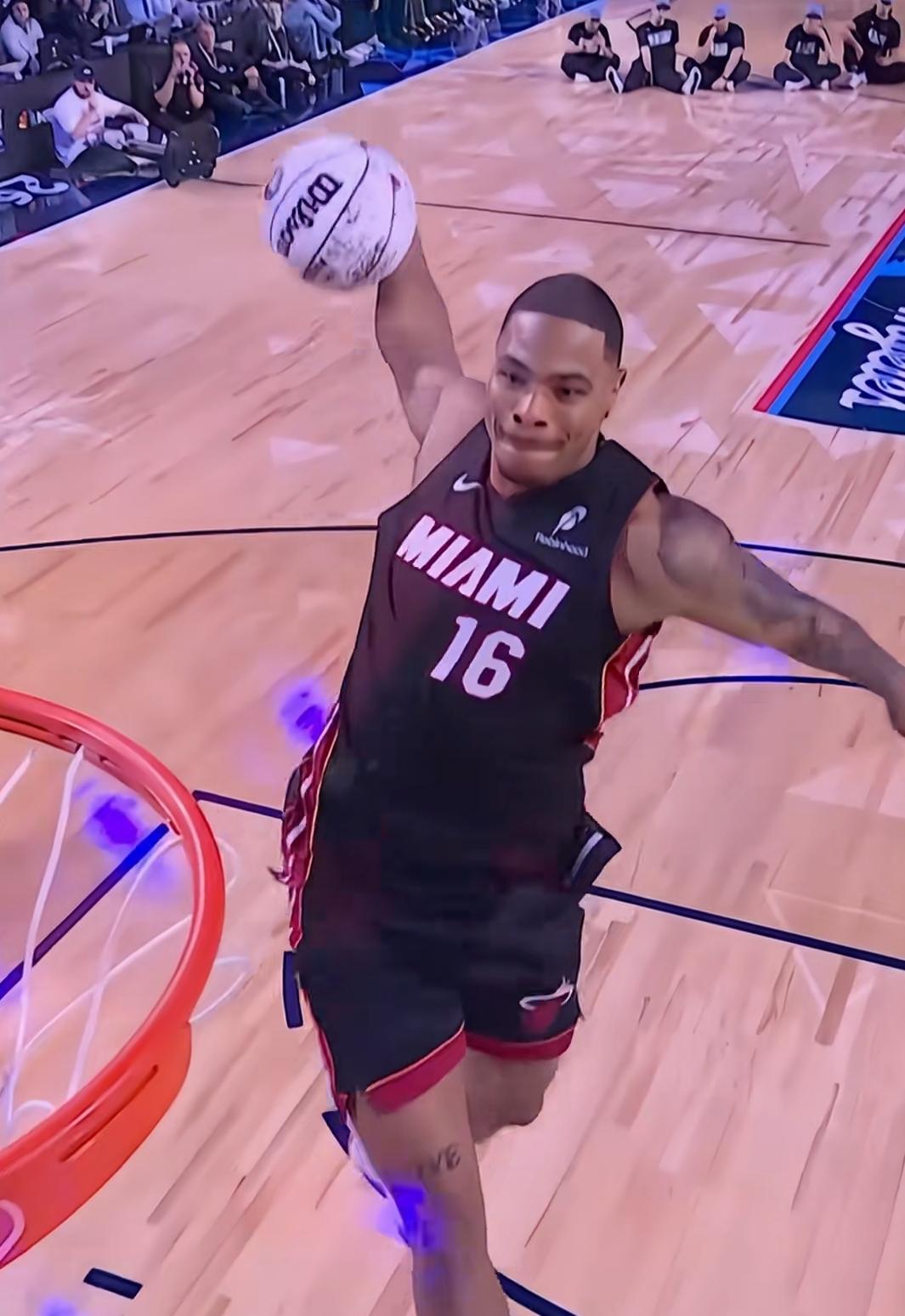 以后,NBA全明星扣篮大赛可以取消了! 今年的比赛没把人笑死。 冠军是迈阿密热火队的凯沙德·约翰逊 ,他那几个动作致敬了几位球星,仅此而已! 还以为能从罚篮线起飞,结果是往前跨了一步。 其他两组动作也乏善可陈。 最精彩的还是魔术队杰特·理查德森,这哥们本来想完成一个空接360度扣篮,万万没想到,手臂被篮筐侧面卡了一下,结果落地不稳,后脑磕到了地板上,场面有些惊悚。 好在他并无大碍。 可以这么说,扣篮大赛江郎才尽,创意越来越难,不如早点取消。