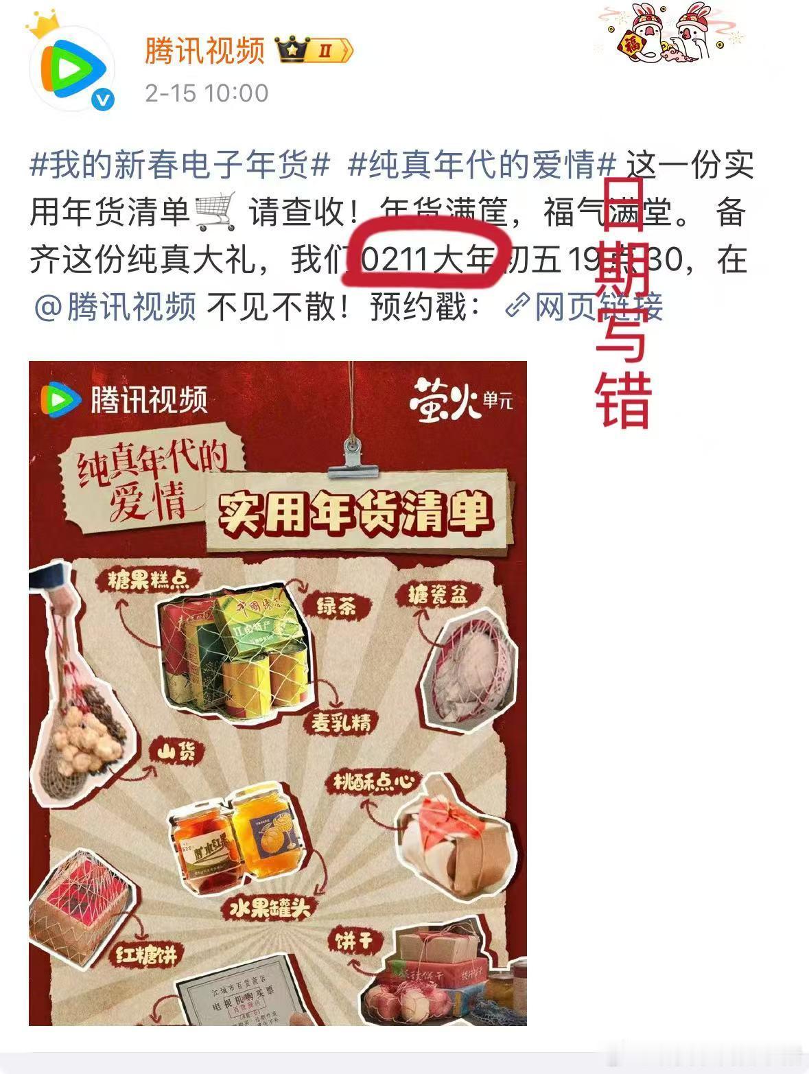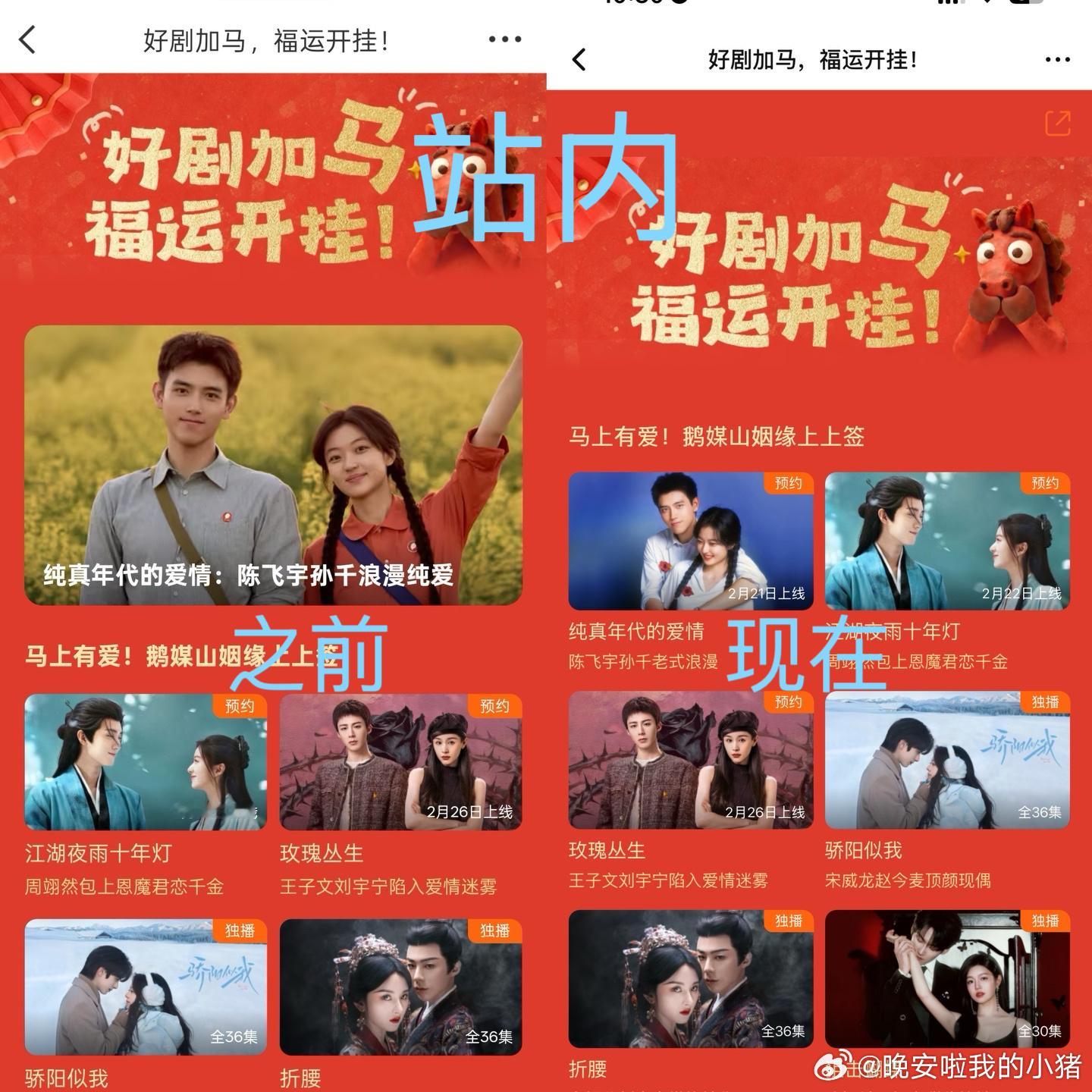 🐧发布春节追剧片单,陈飞宇、孙千纯真年代的爱情本来是占头版+超大海报,现在直接改海报、改固屏,宣传日期也写错了
