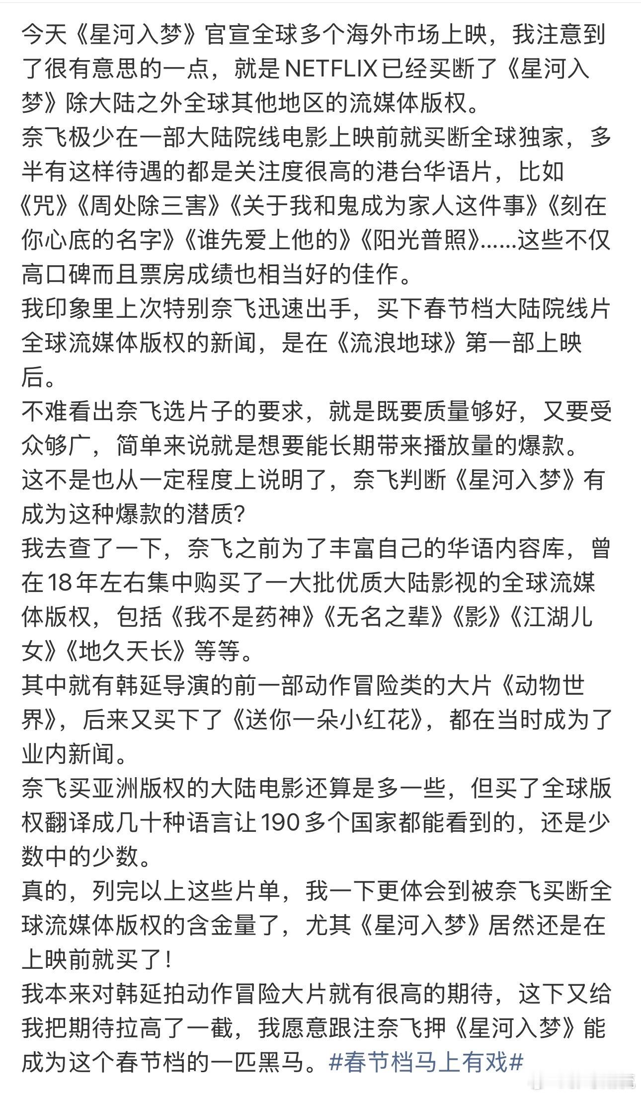 海外流媒买断星河入梦的含金量 还没上映就被海外流媒提前锁定,这份认可比任何宣传都