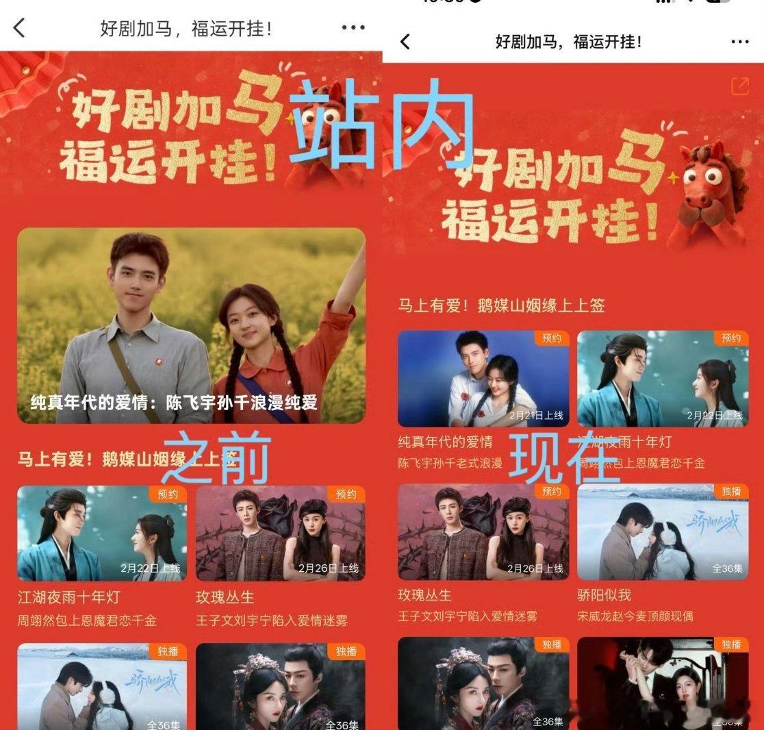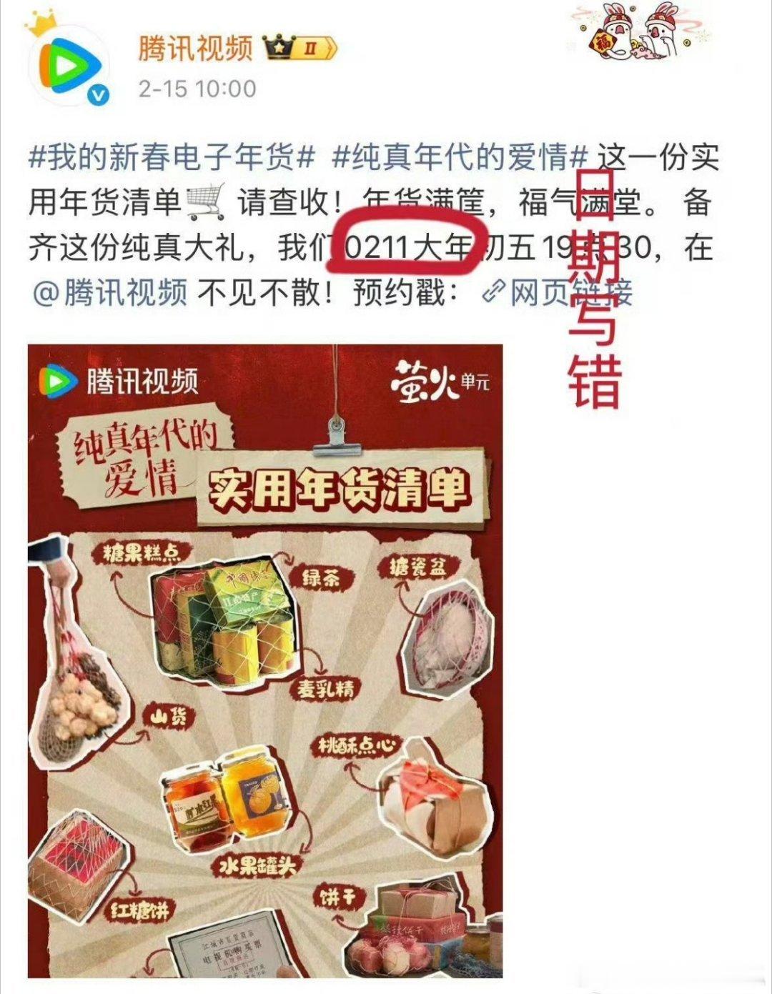 有点离谱,🐧发的春节追剧片单,陈飞宇 孙千《纯真年代的爱情》本来是占头版,现在又直接改了海报版面的固屏,甚至连播出日期也写错了?