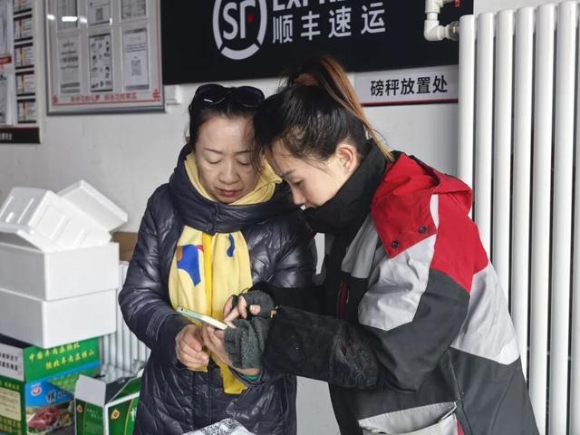 在顺丰速运驿站前台,前来寄快递的市民较往日明显增多,大大小小的包裹装载着沉甸甸的心意。胶带一圈圈缠紧箱子,封口机“咔嗒”作响,快递员一边核对地址,一边叮嘱生鲜食品需加固包装。市民乔飞一早就带着几箱熟牛肉来到站点,“这是我自己做的熟牛肉,打算寄给远在内蒙古呼和浩特市的妈妈,希望她在新的一年万事如意。”乔飞开心地说。