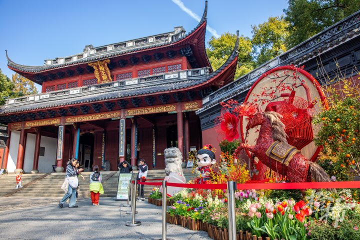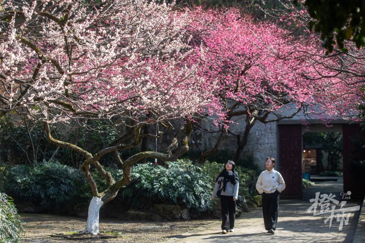 眼下是赏梅的最佳时节。在西湖边的岳王庙内,梅花盛开,游客纷纷前来打卡拍照,同时缅怀英雄,实地感受“精忠报国”的民族豪情。