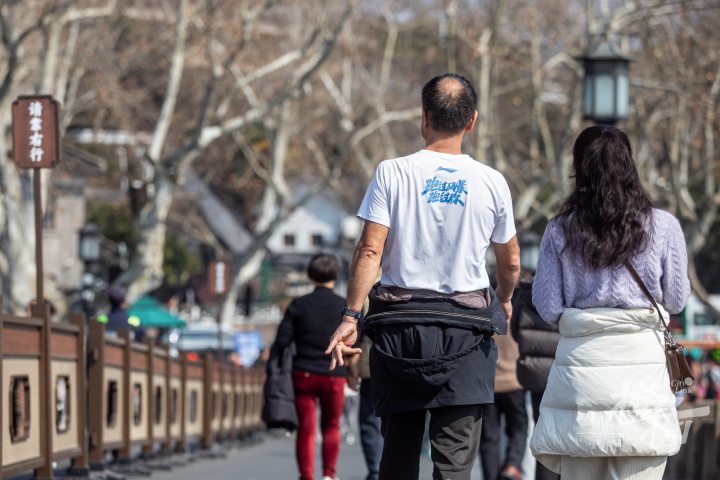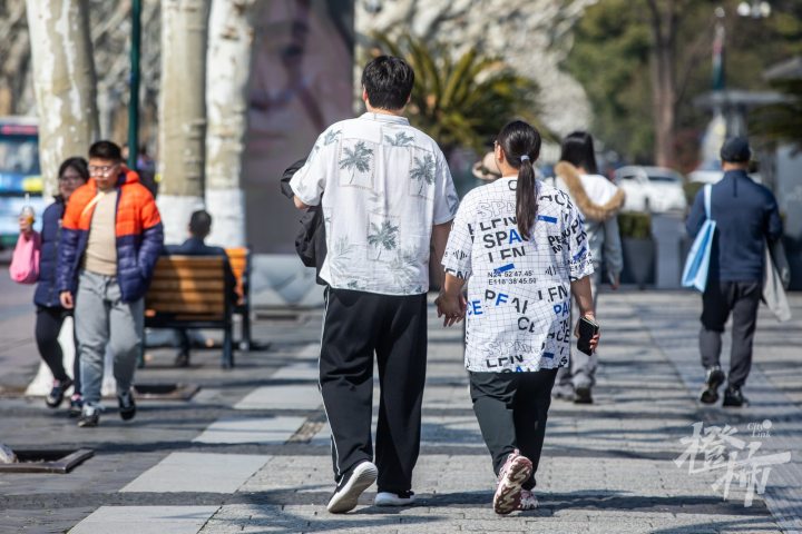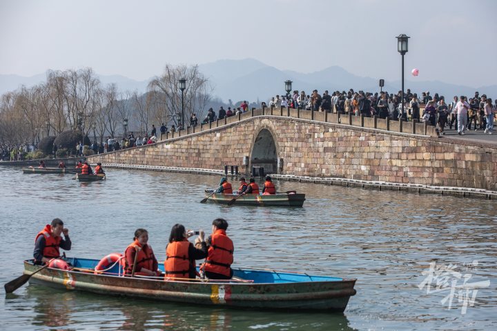 今天下午,气温超过21℃,温暖如春。在杭州街头和西湖边,市民游客纷纷脱去厚重的外套,穿着短袖、裙装等清凉服饰,轻装出行,仿佛一秒入春。