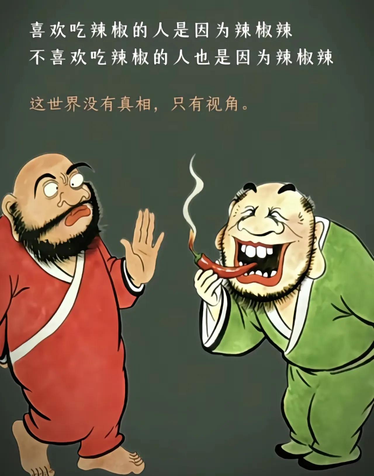 苹果已不是那个苹果,辣椒还是那个辣椒,只是因为角度不同,所以得出了不一样的结论。