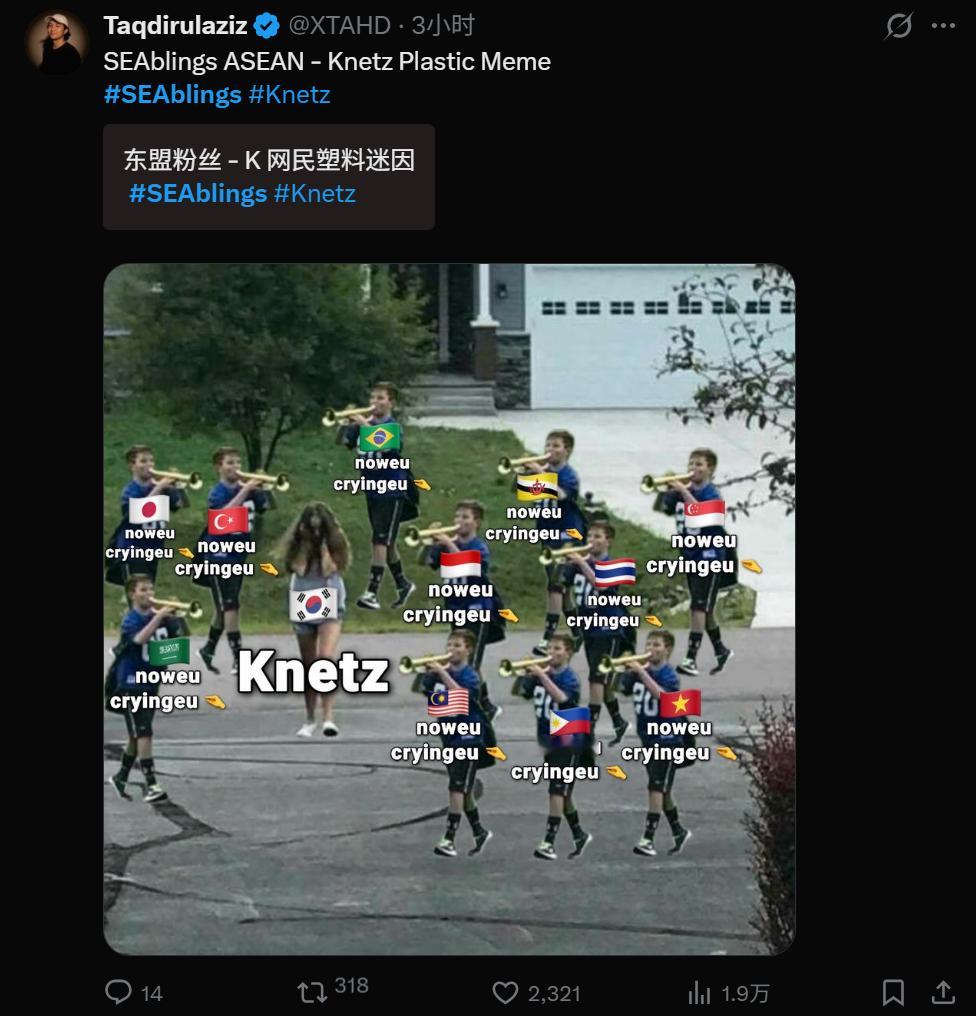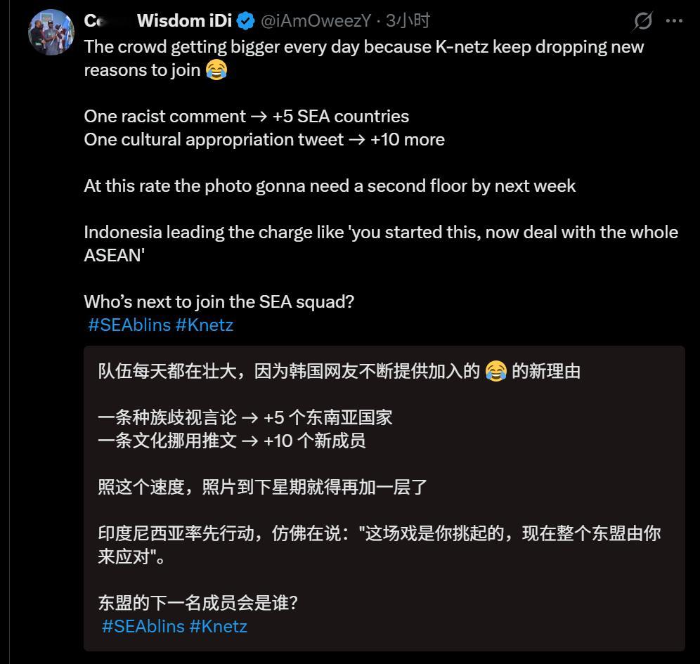 韩国和东南亚网友在外网对线,中国网友几乎不参与。结果韩国网友觉得寡不敌众,所以直
