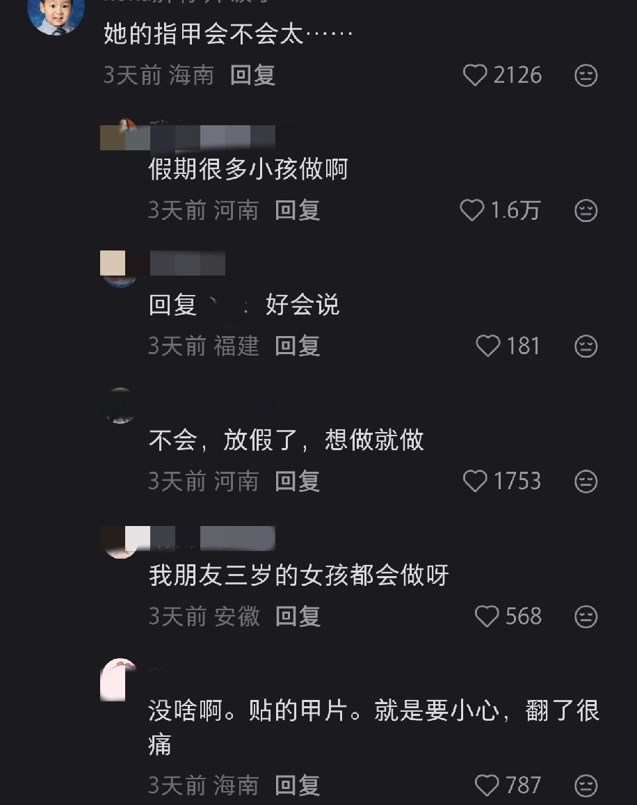 小酒窝也挺可怜的。 小小年纪就要生活在大众的审判中,一举一动都会被人点评。 放假了跟着妈妈后爸出去旅游,也避免不了被路人放大跟拍。 看她面对陌生人偷拍的眼神,明显也是不喜欢这种处处被“监视”的生活。 做个指甲,都被很多人说她“早熟” 相比之下,朵朵就表现得很轻松自在。 一来他不怎么上热搜,二来他没有自己的社交账号,爸妈把他保护🉐很好。 希望董璇少让酒窝营业了,毕竟还是个孩子,给她点自由的空间吧。