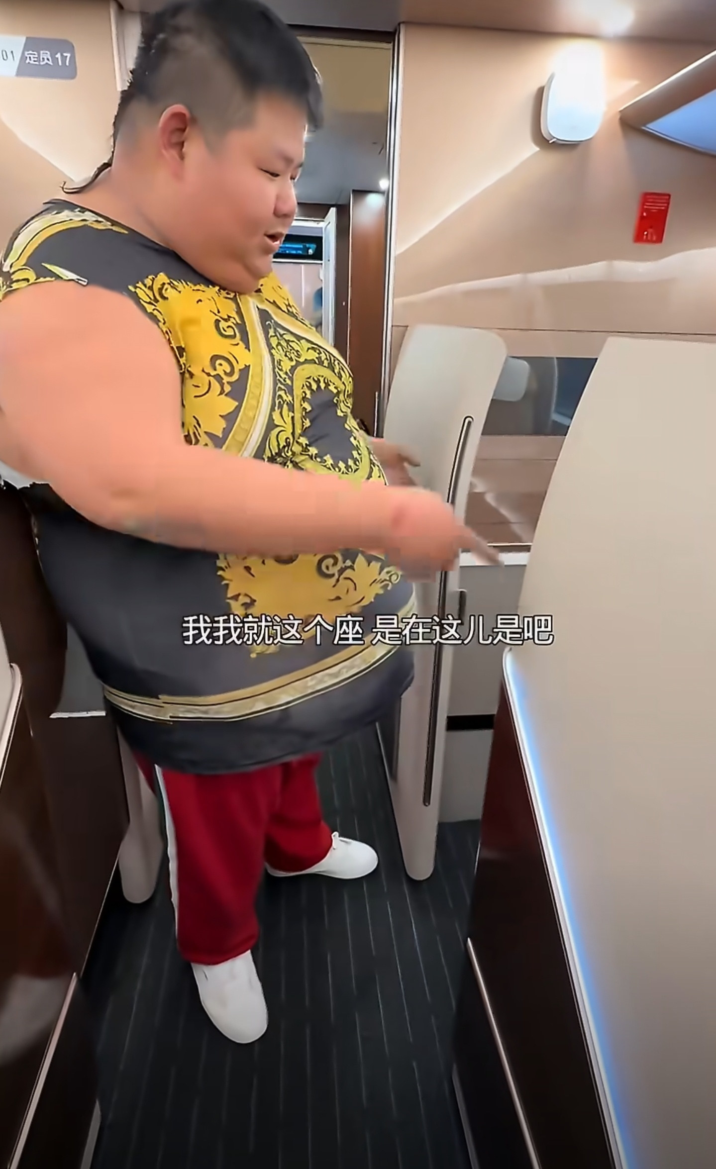 刷到良子大胃袋坐高铁的视频。就看他在车厢里对着座位一脸懵,嘴里还碎碎念:“我就这个座,是在这儿是吧?”