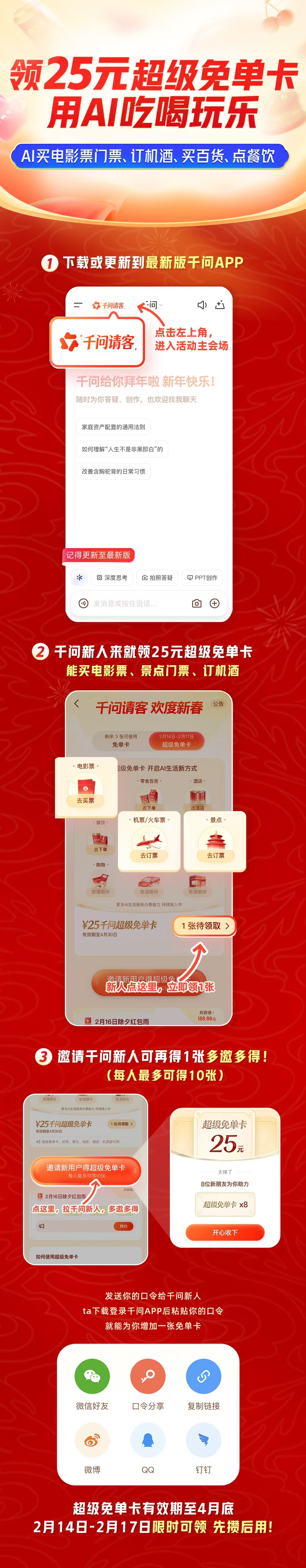 千问让我实现了景区门票自由 带爸妈出游再也不怕贵啦!千问超级免单卡太实用,优惠多多超划算。今年出门玩得尽兴又省钱,一家人开开心心,这才是过年最舒服的样子~千问超级免单卡能买年货能买票