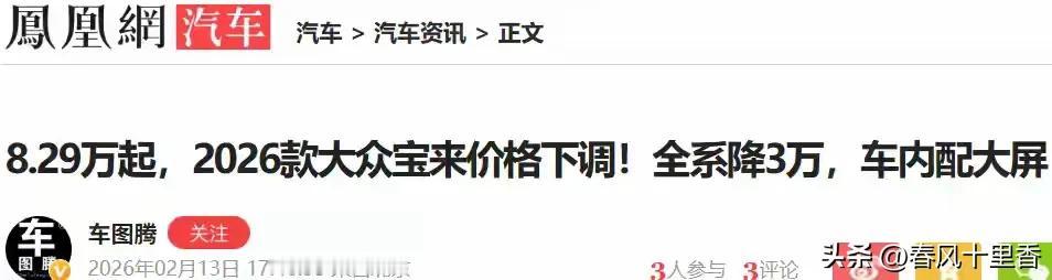 2月13日一汽 - 大众这波操作太猛了,旗下2026款宝来直接直降3万元!这降价力度,简直是给消费者送福利。宝来作为紧凑型轿车,一直以来凭借稳定的性能和实用的空间受到不少人青睐。之前可能因为价格,让一些人犹豫。现在直降3万,性价比一下子就上去了。对于预算有限又想买合资车的朋友来说,这是个绝佳的入手机会。要是等过段时间价格回调,可就亏大了。估计这波降价会让宝来的销量迎来一波小高峰,毕竟谁能拒绝这么大的优惠呢。