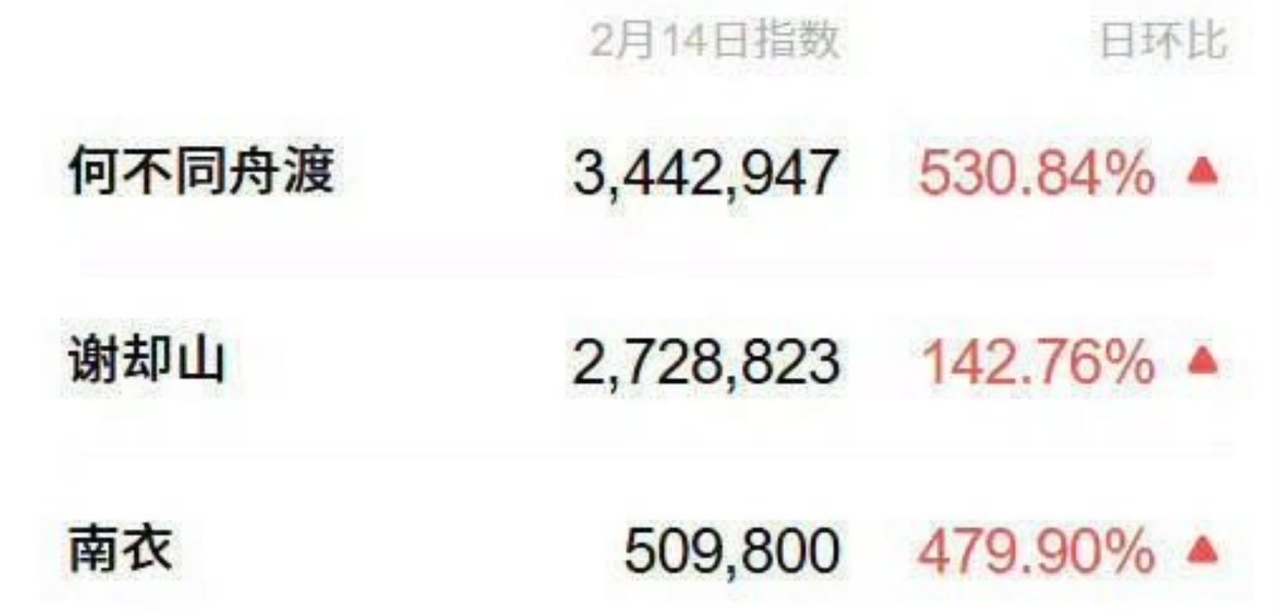 檀健次檀健次谢却山 昨日,各大剧集情人节专属物料轮番上线,全网掀起火热的物料比拼大战。檀健次饰演的谢却山凭借惊艳绝伦的表现实力碾压全场,毫无悬念夺得榜首之位,用实力杀死比赛,檀健次总是如此!各项权威数据直观印证,由檀健次领衔的《何不同舟渡》以断层式优势领跑所有剧集,成为此次情人节物料大战的绝对顶流,檀健次饰演的谢却山无疑是顶流中的顶流!
