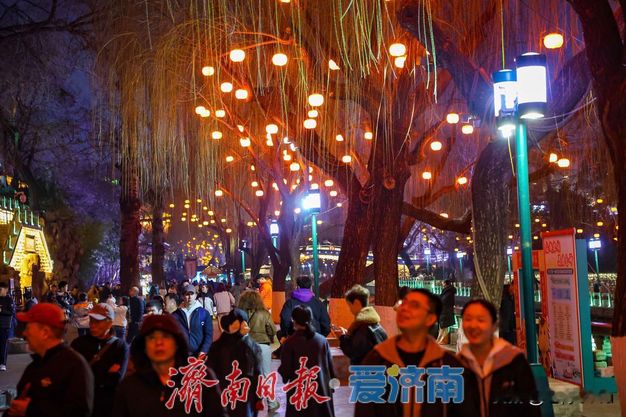 济南护城河两岸红灯笼映泉城 年味正浓 2月14日济南护城河两岸红灯笼点亮,与泉水、古桥等相映成趣。 游人如织。济南以护城河为纽带推出迎春花灯等系列活动,打造沉浸式文旅体验,夜游赏灯成出行首选,点燃新春文旅消费热潮。