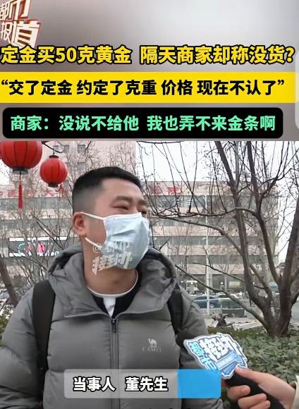 “玩不起!”河南郑州,一男子交了1000定金,以每克1126元的价格,买了50克金条,不料第二天金价就涨到1140元,男子一算,净挣700,立马去提货,可不料,老板突然变卦:没货!我赔偿你100元,不够再加点。男子气坏了:你这个奸商,50克黄金涨了700,你100打发叫花子呢?结果始料不及。 河南郑州,董先生这阵子天天盯着金价。 不是他突然爱上了投资,而是最近刷手机,几乎每个直播间都在喊:“黄金还要涨!”主播嘴皮子飞快,K线图一拉,评论区全是“上车”“闭眼买”“现在不买以后更贵”。 董先生本来就有点闲钱,再加上最近金价确实一路往上窜,心里也跟着痒了。 那天晚上,他刷进了一个卖金条的直播间。 主播说得很笃定:“我们这是实物金条,不是纸黄金,锁价下单,定金一交,价格就给你定死。今天是1126一克,明天涨不涨,跟你没关系。” 董先生听到“锁价”两个字,心一下就稳了。 他反复问了好几遍:“真能锁价?第二天涨了也按今天的算?” 主播拍着胸脯保证:“哥,你放心,直播间多少人都这么买的,规则写得清清楚楚。” 董先生一咬牙,下了单——50克金条,每克1126元。按规则,他先付了1000块定金,剩下的钱提货时再结。 下完单那一刻,他心里还有点小紧张,毕竟不是几十块的小玩意儿。但转念一想:就算不涨,买点实物黄金压箱底,也不算亏。 谁知道,第二天一早,他手机一亮,金价推送跳了出来。 1140元/克。 董先生愣了几秒,立马拿起计算器一算: 1140减1126,一克14块; 14块×50克,整整700块。 “哟,这还真让我赶上了。” 那一刻,他心里不是狂喜,而是一种“自己挺会算账”的小得意。700块虽然不算巨款,但一晚上就涨出来,搁谁心里都舒坦。 他当即联系商家,准备提货。 可没想到,消息刚发过去,对面回得异常慢。过了好一会儿,客服才发来一句话: “董先生,不好意思,您这个规格的金条暂时没货了。” 董先生以为自己看错了,又追问了一句:“不是锁价了吗?我昨天都下单了,怎么会没货?” 对面很快又补了一条:“确实是没货,我们这边可以给您退定金,再额外补偿您100元,算是我们的诚意。” 董先生看到“100元”三个字,火“噌”地就上来了。 他直接语音过去:“你这什么意思?我50克黄金,今天涨了700,你一句没货,就给我100?这不是耍人吗?” 客服语气依旧客气:“董先生,实在抱歉,这是公司规定,我们也没办法。” “没办法?”董先生越听越来气,“你们直播间当初怎么说的?锁价!定金!现在金价涨了,你就告诉我没货?要是跌了,你们是不是就有货了?” 对面沉默了几秒,只回了一句:“我帮您向上级申请一下。” 这一等,就是半个多小时。 期间董先生越想越不对劲,心里憋着一股气: 涨了就没货,跌了就让你提货,这不就是明摆着只做对自己有利的买卖吗? 他甚至开始怀疑,所谓“没货”,根本就是不想按低价卖。 很快,客服再次发来消息:“董先生,我们领导说了,可以在原基础上,再给您加一点补偿。” “加多少?”董先生立刻问。 “加到300。” 董先生直接回了四个字:“不可能。” 他算得很清楚,这不是钱多钱少的问题,而是规则被随意推翻的事。要是今天他认了,等于默认商家可以随时反悔。 几番拉扯下来,双方语气都不太好看了。董先生气得直说:“你们这就是奸商行为!” 客服那头也开始反复强调:“我们真的没有货,不是故意违约。” 最后,可能是怕事情闹大,商家那边终于松口:“这样吧,补偿您500元,这是我们能给到的最高了。” 500块。 董先生盯着这条消息看了很久。 说实话,离他算出来的700,只差200。继续僵下去,投诉、维权、扯皮,时间成本也不小。金条是拿不到了,气再生,也换不回那50克黄金。 犹豫再三,他回了一句:“行,500就500。” 钱很快退了回来,定金加补偿,一分不少。 但董先生心里一点也高兴不起来。 事后他跟朋友吐槽:“你说我这算不算被套路?规则是他们定的,最后解释权也在他们手里。涨了就没货,亏的永远是消费者。”
