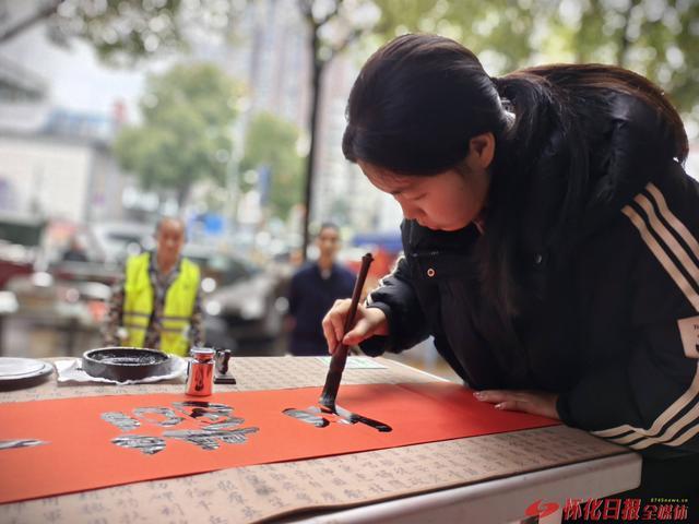 怀化日报全媒体讯腊月二十八,鹤城区石门街头年味正浓、赶场人流络绎不绝。一张书桌、一方砚台、一叠红纸,17岁少女邱乐乐端坐案前,提笔蘸墨、落笔生花,一副副笔力刚劲、秀雅吉祥的春联与福字,在寒风中送出阵阵暖意,成为“福地怀化欢乐年”里一道动人的青春风景。