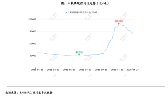 下游需求的爆发,迅速传导至上游材料环节,引发六氟磷酸锂、VC等关键材料价格大幅上涨。以六氟磷酸锂为例,根据百川盈孚数据,其价格在2025年从最低4.9万元/吨飙升至17.8万元/吨,半年涨幅超2.6倍。