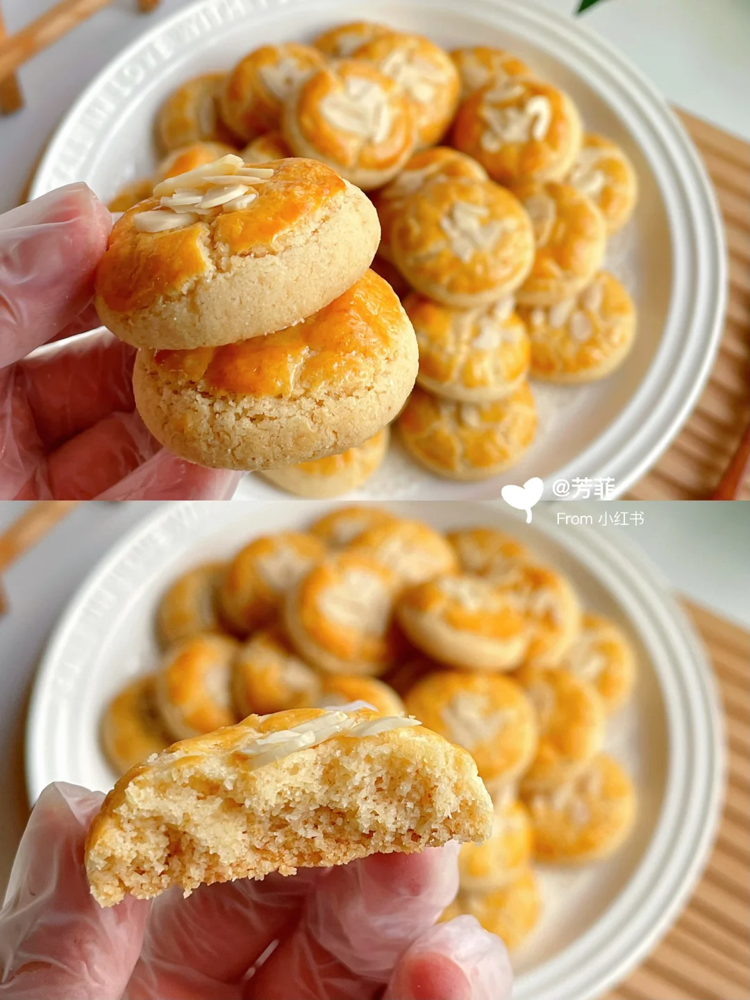 ♨️出炉香迷糊了,很浓郁的杏仁香,老少皆宜都说比买的还好吃!做好密封保存,可以放一个星期左右;做新年零食待客或伴手礼都很不错,喜欢快做起来吧💃🏻💃🏻