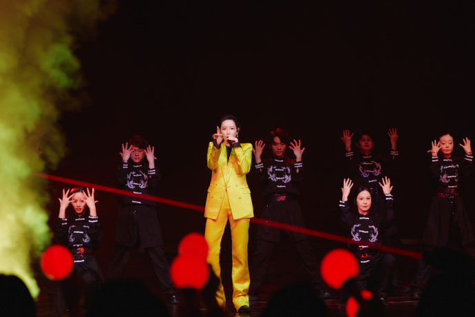 李斯丹妮好强的驾驭能力!荧光黄色的西装在她身上毫不突兀,反而显得整个人更加明媚亮眼,在台上好加分。
