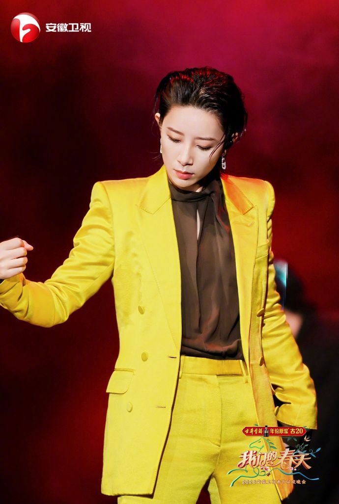 李斯丹妮扛住了荧光黄李斯丹妮好强的驾驭能力!荧光黄色的西装在她身上毫不突兀,反而