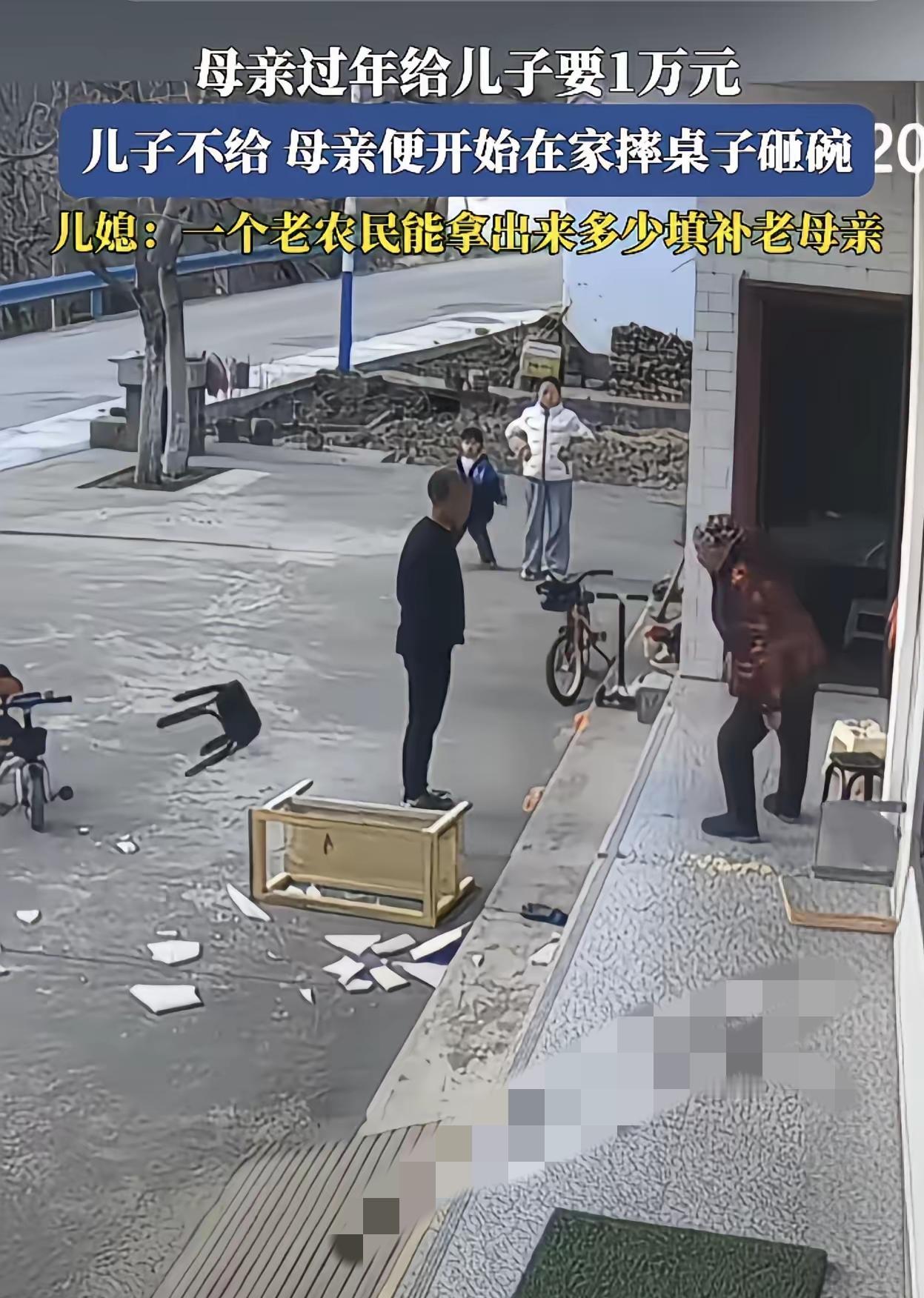 母亲过年开口跟儿子要1万元,儿子实在拿不出来没答应,老人当场就急了,气得摔桌子砸板凳,碗碟碎了一地,场面特别难看。儿媳妇在一旁无奈叹气,说自家也是普通老百姓,还是农村过日子的,能帮衬的早就尽力填补了,实在拿不出一万块。 看老人发脾气的力气,一点都不像身体不好的样子,不少人都说,看着这股火气,年轻时大概率也不是好相处的性子。其实说到底,还是日子不宽裕闹的,儿子要是手头宽裕,谁不想痛痛快快孝敬父母,谁愿意过年闹成这样。 一家人过日子,本就该互相体谅,老人要理解孩子的难处,孩子也该尽力照顾老人,硬碰硬只会伤了亲情。 你们觉得这件事到底是谁的问题?