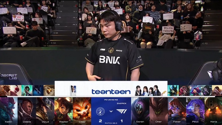 T1vsBFX第四局BP:Oner石头/Doran武器/Faker阿萝拉,BFX中单卡牌